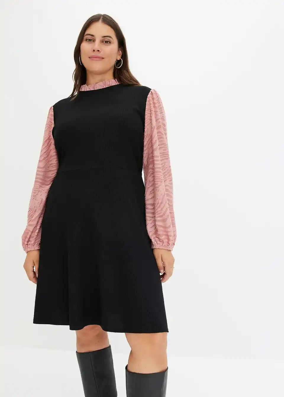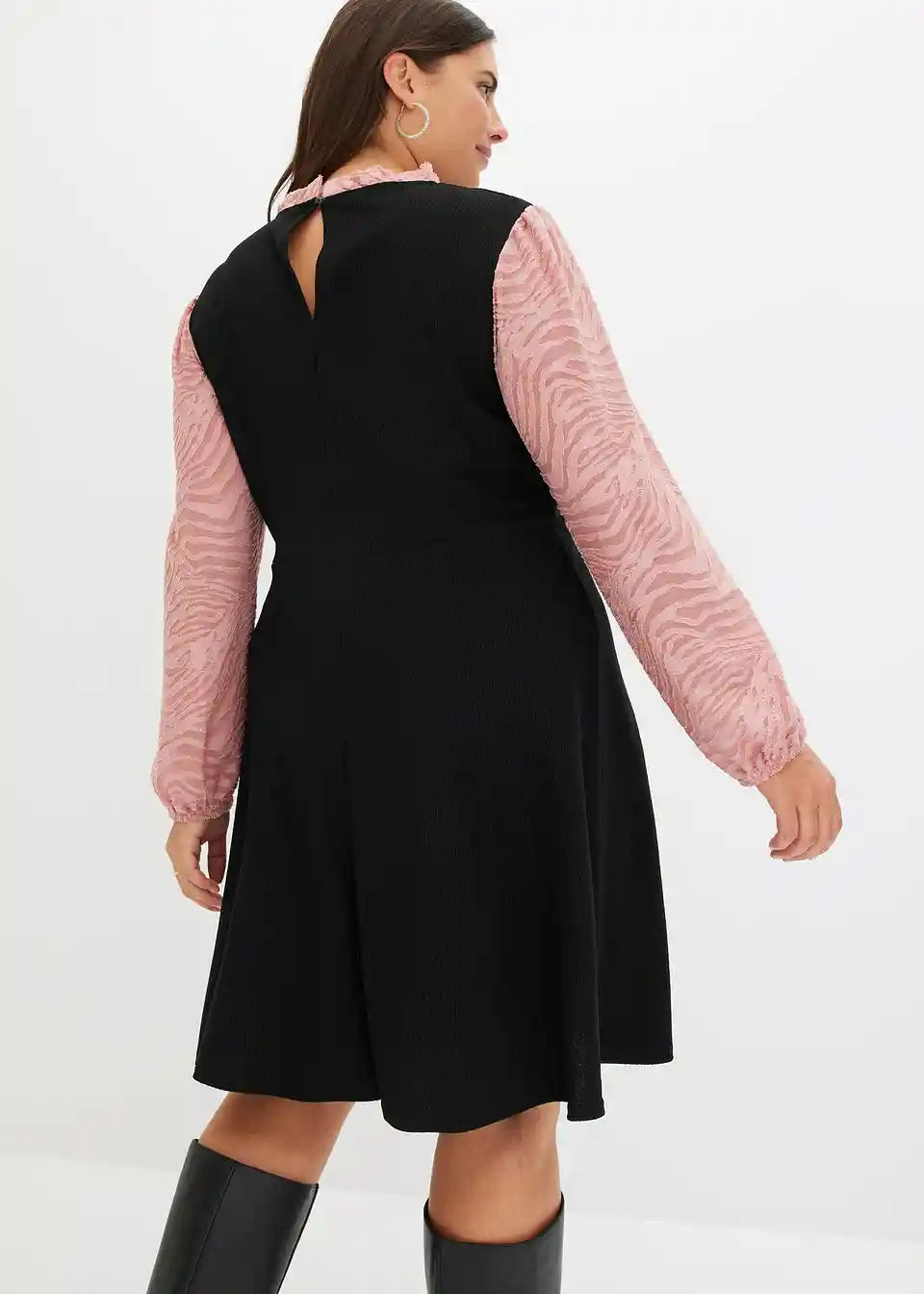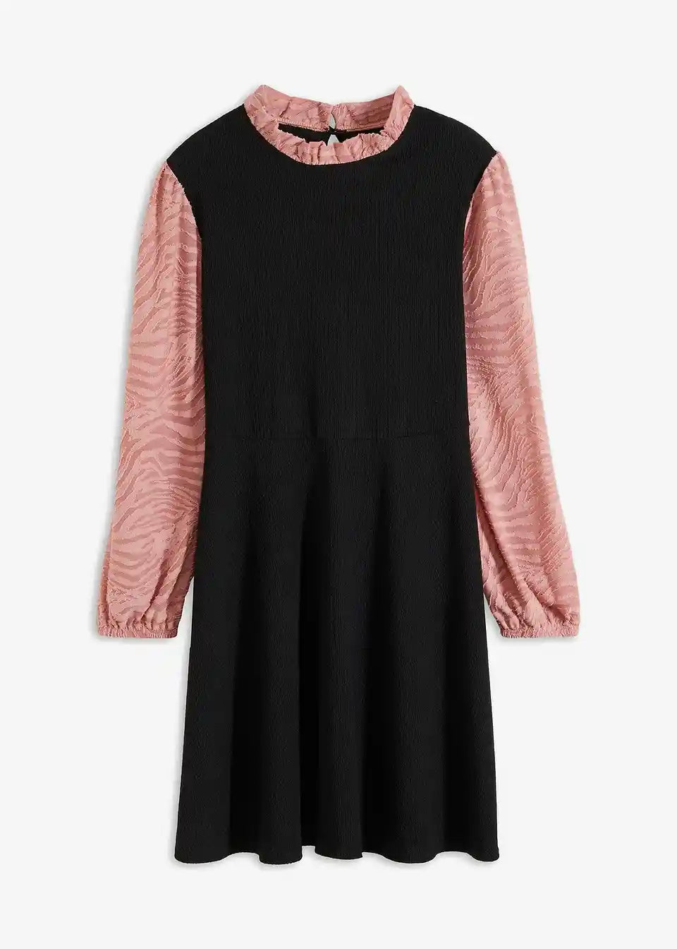 feminina haljina s jacquard rukavima i malim volanom na izrezu