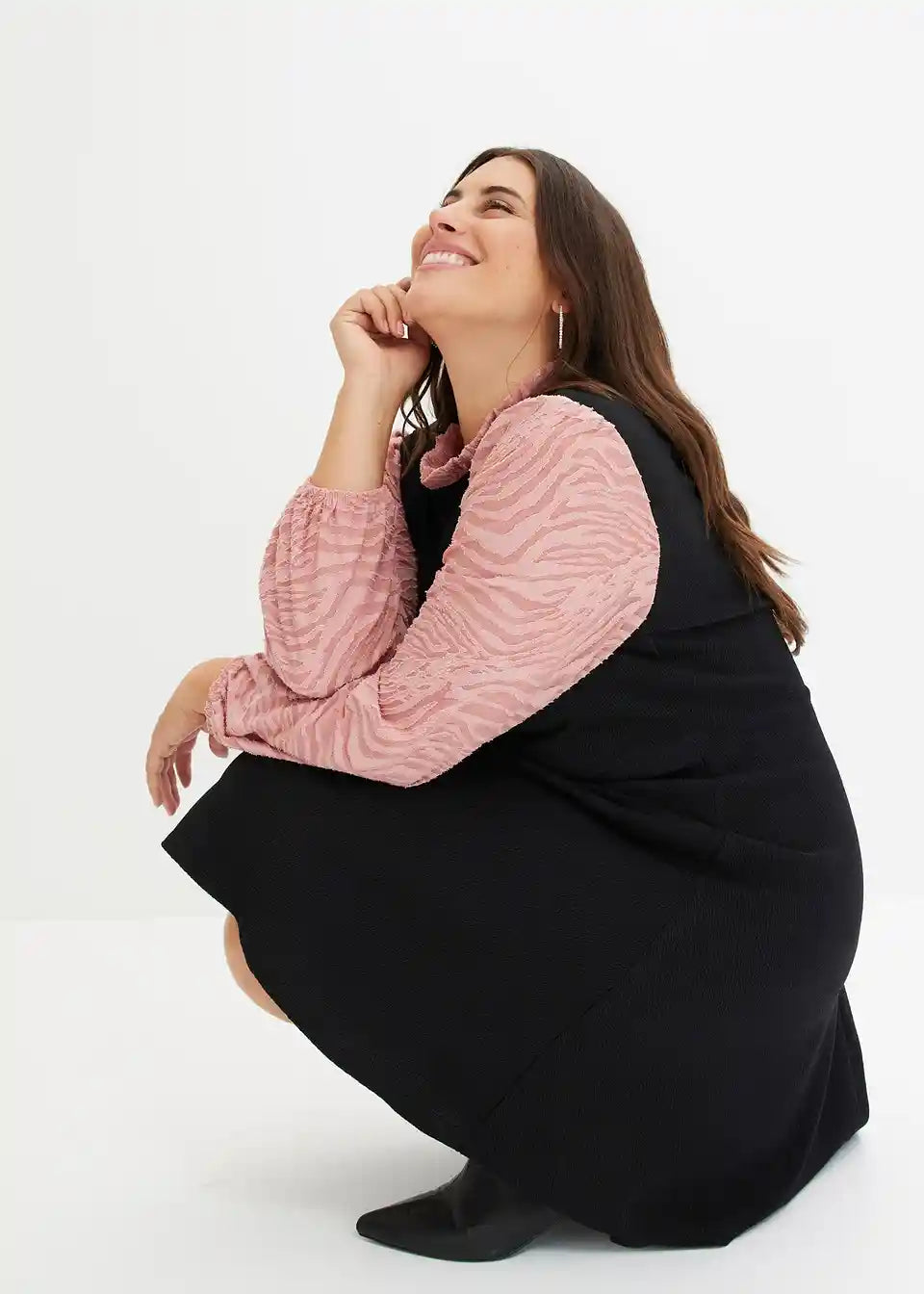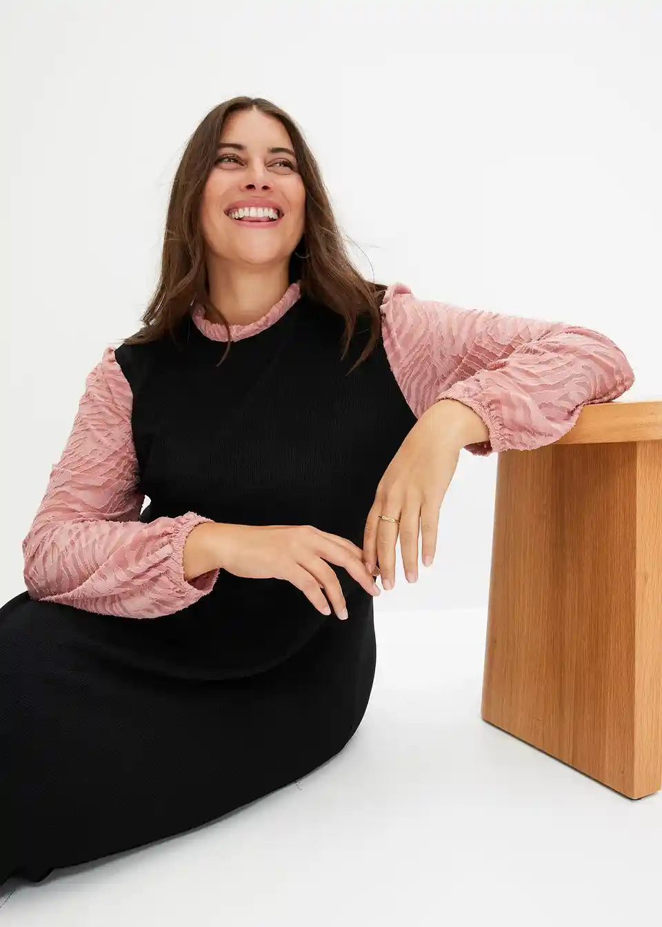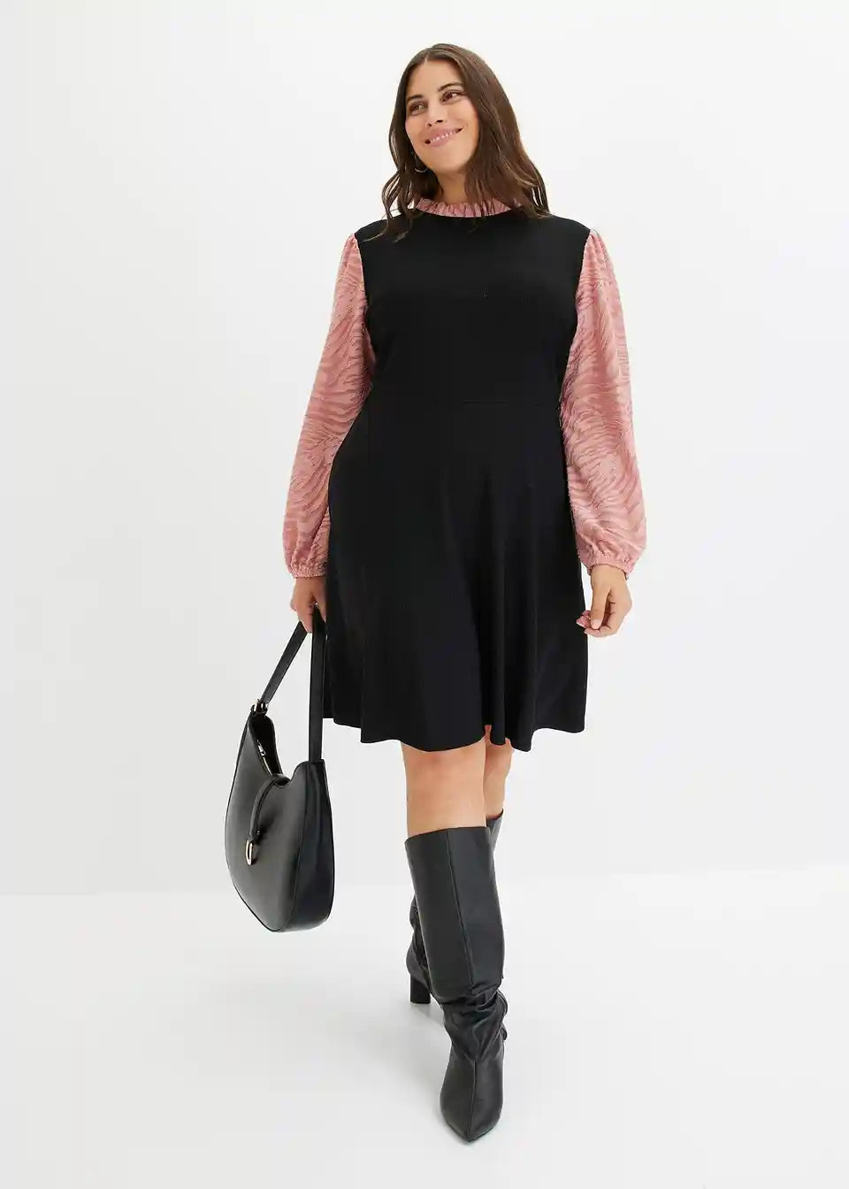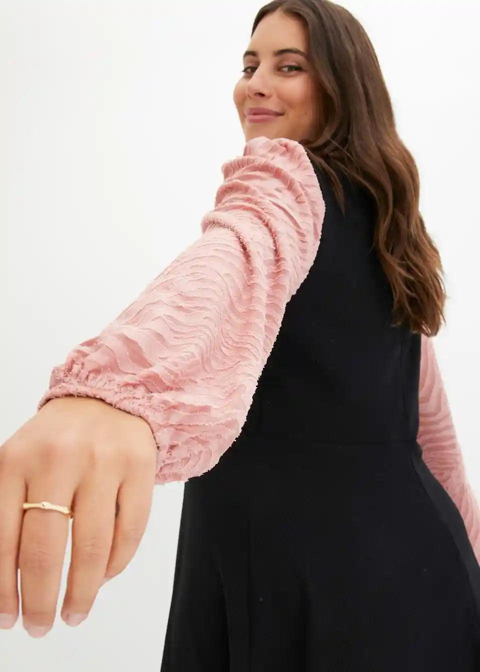 feminina haljina s jacquard rukavima i malim volanom na izrezu