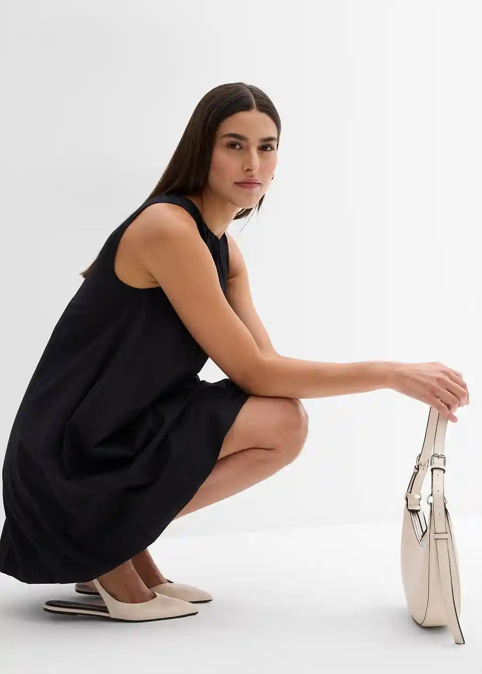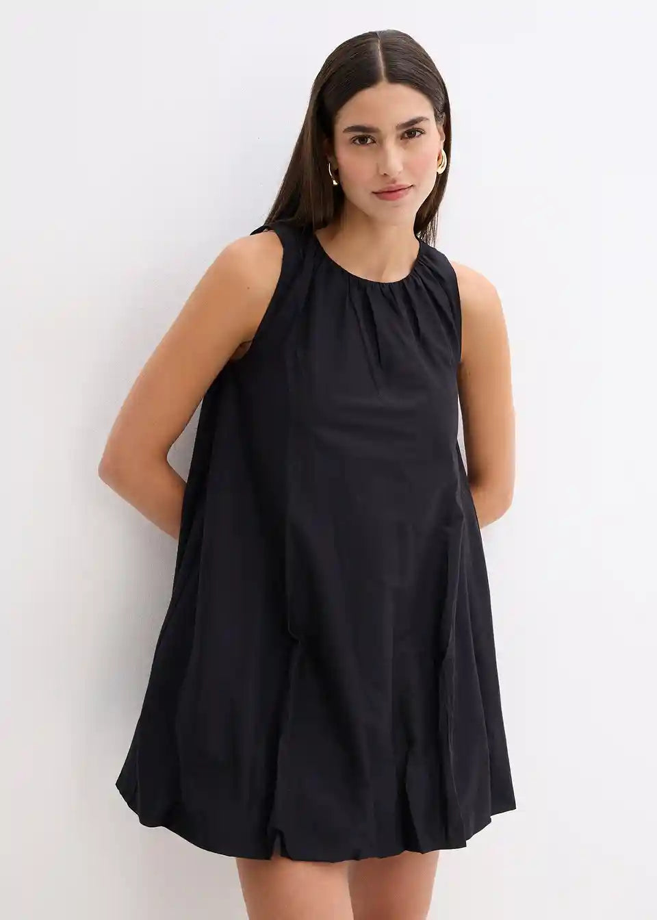 Lagana haljina s okruglim izrezom i balon-rubom od čiste pamuke, lako se kombinira s tajicama