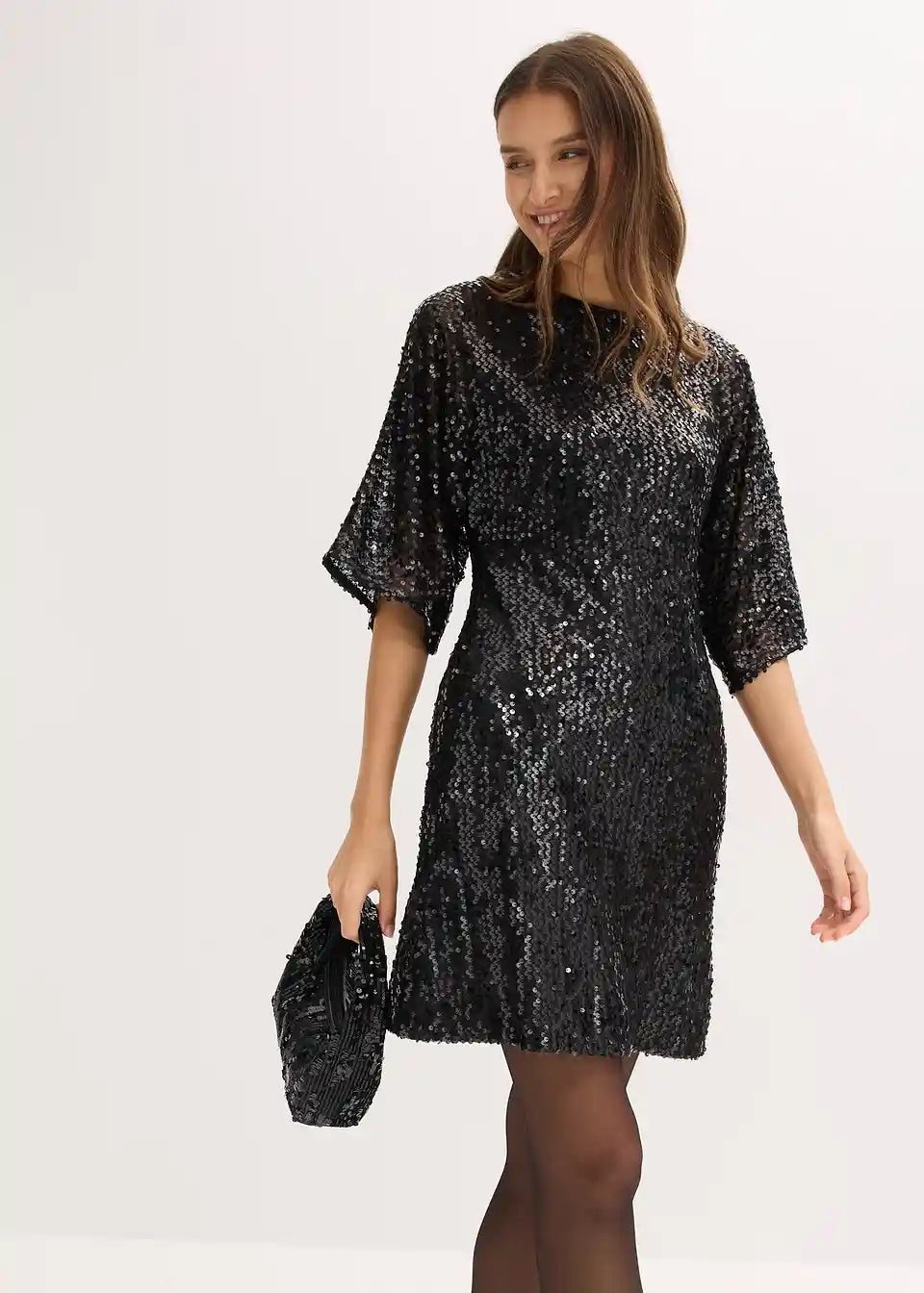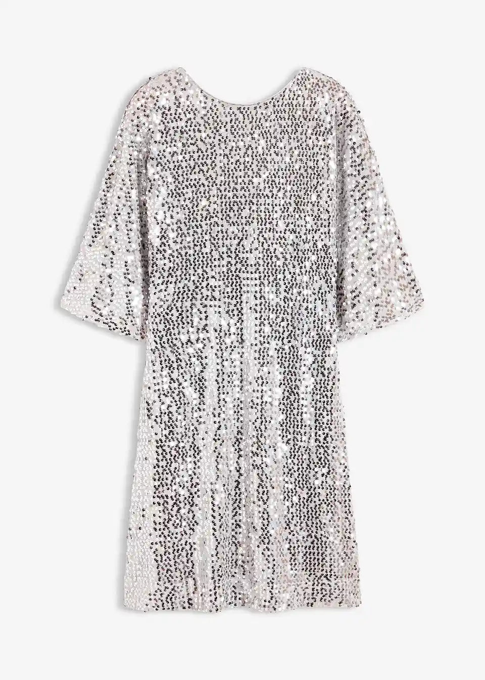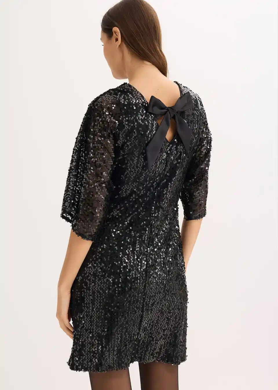 ženstvena haljina s pailletten ukrasima s dubljim izrezom straga i detaljem mašne na leđima