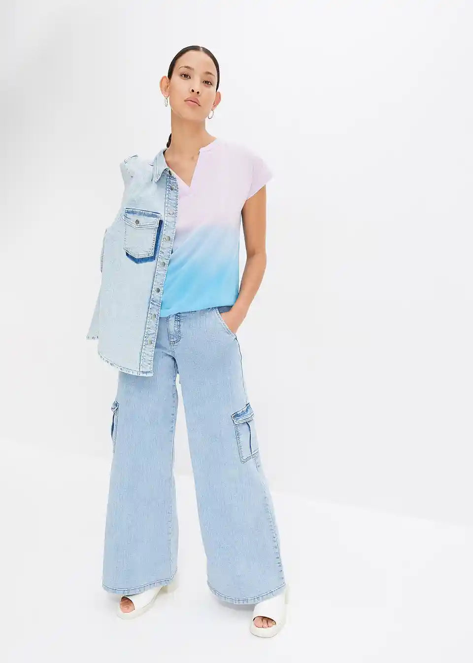 Lijepa majica s V-izrezom i gradacijom boja