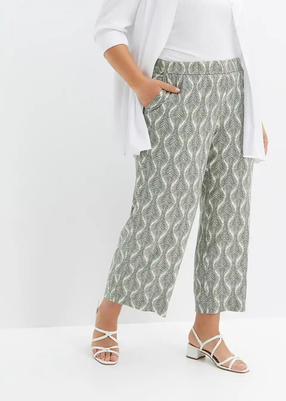 Udobne 7/8 hlače na navlačenje s elastičnim pojasom i modernim printom.