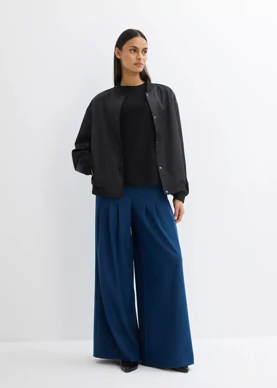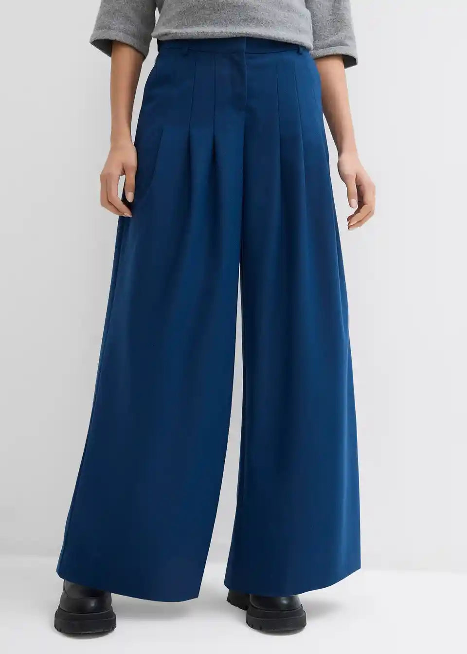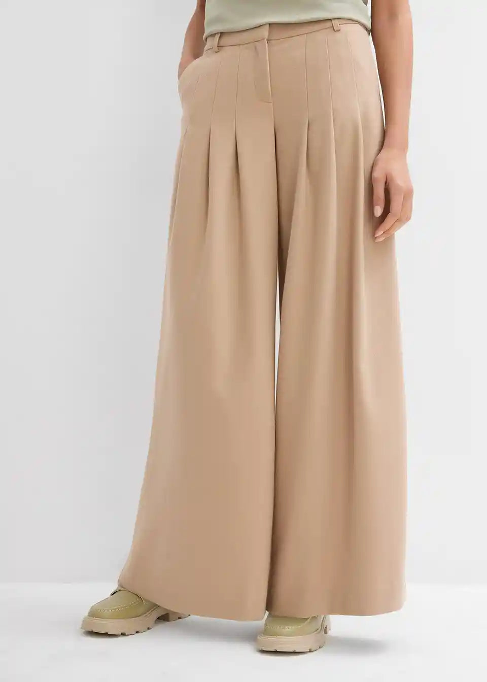 Hlače s naborima s ležernim krojem, naborima sprijeda i širokim nogavicama