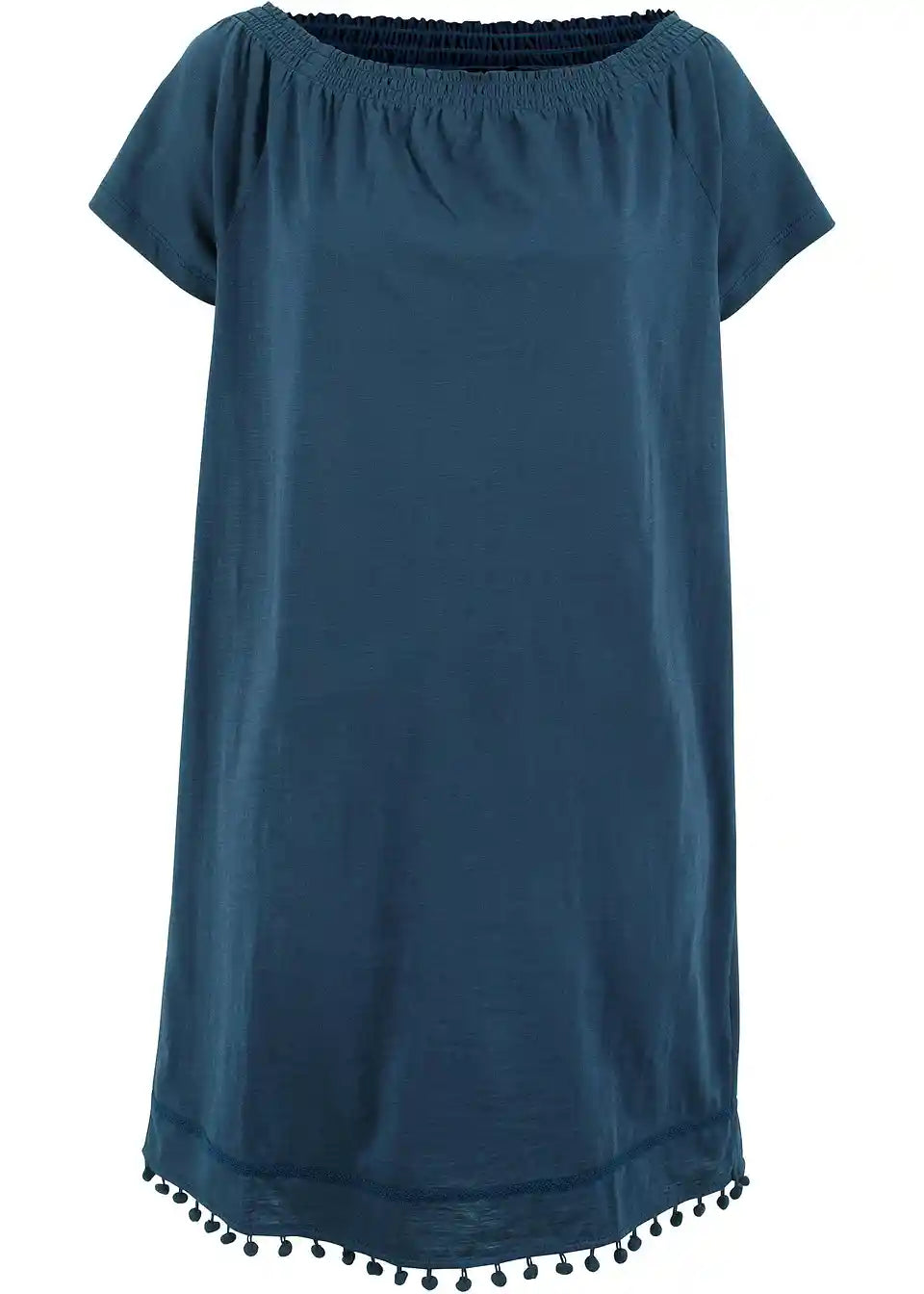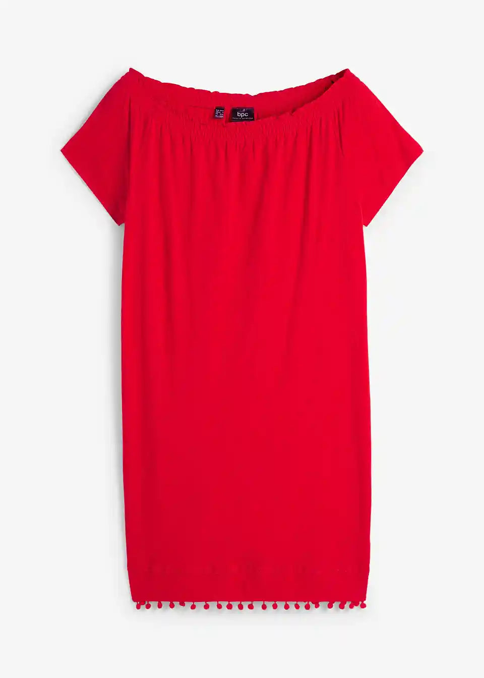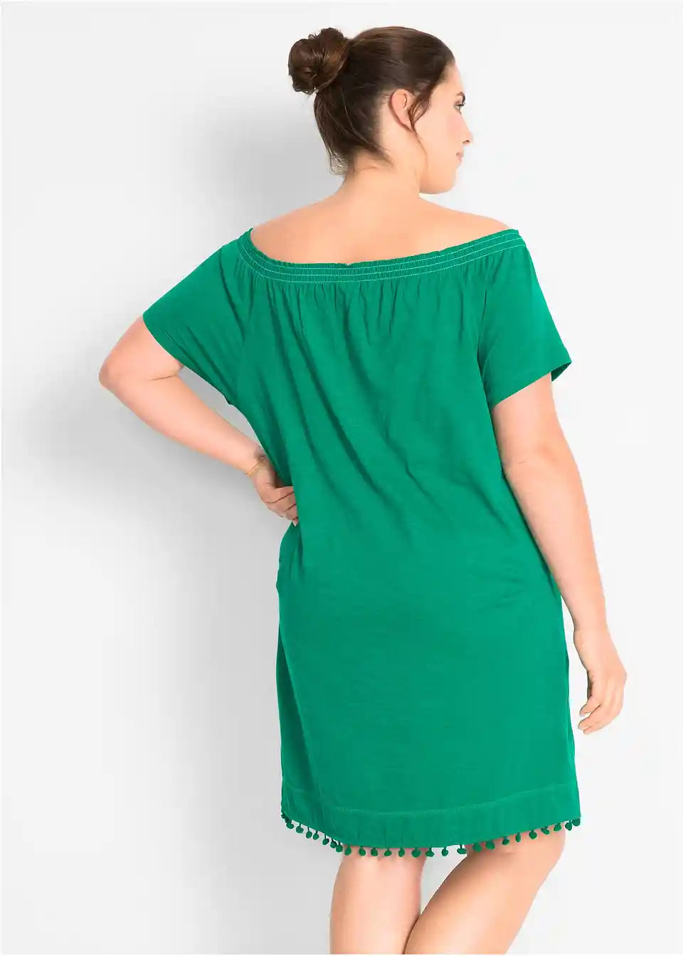 Pamučna haljina s diskretnim Carmen izrezom i dekorativnim rubom