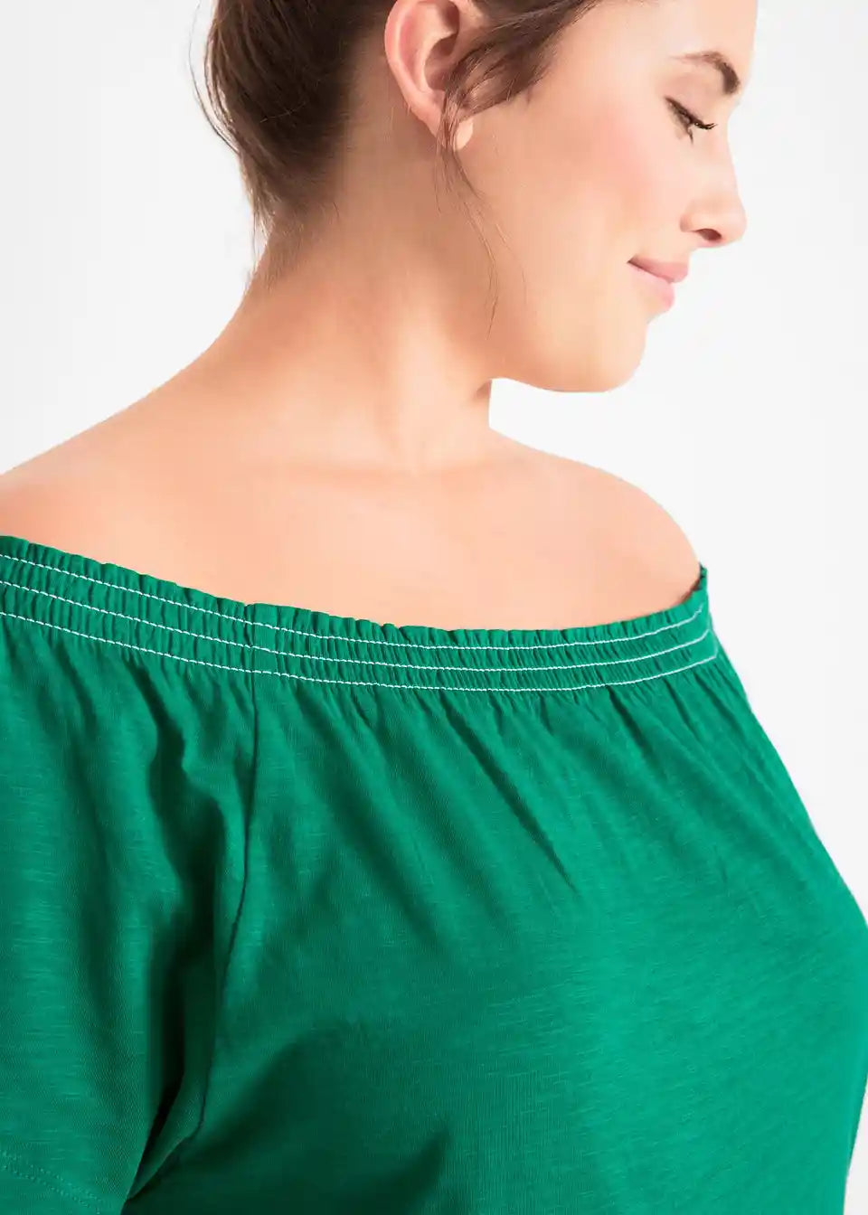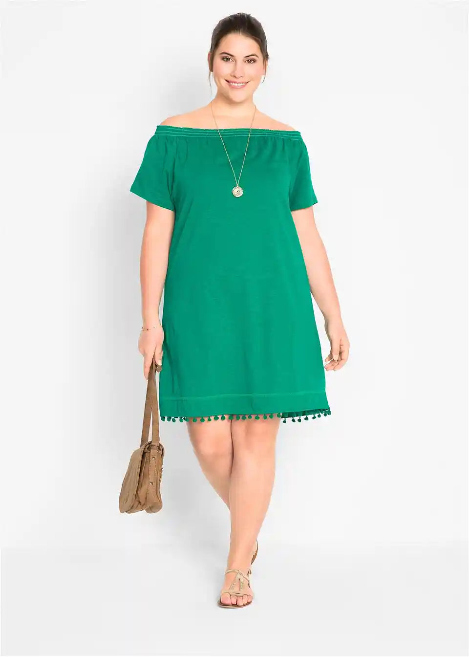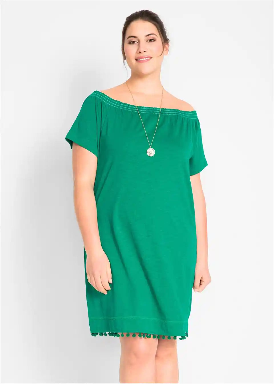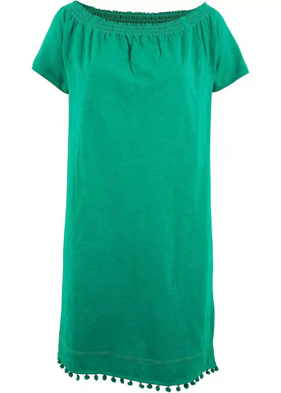 Pamučna haljina s diskretnim Carmen izrezom i dekorativnim rubom