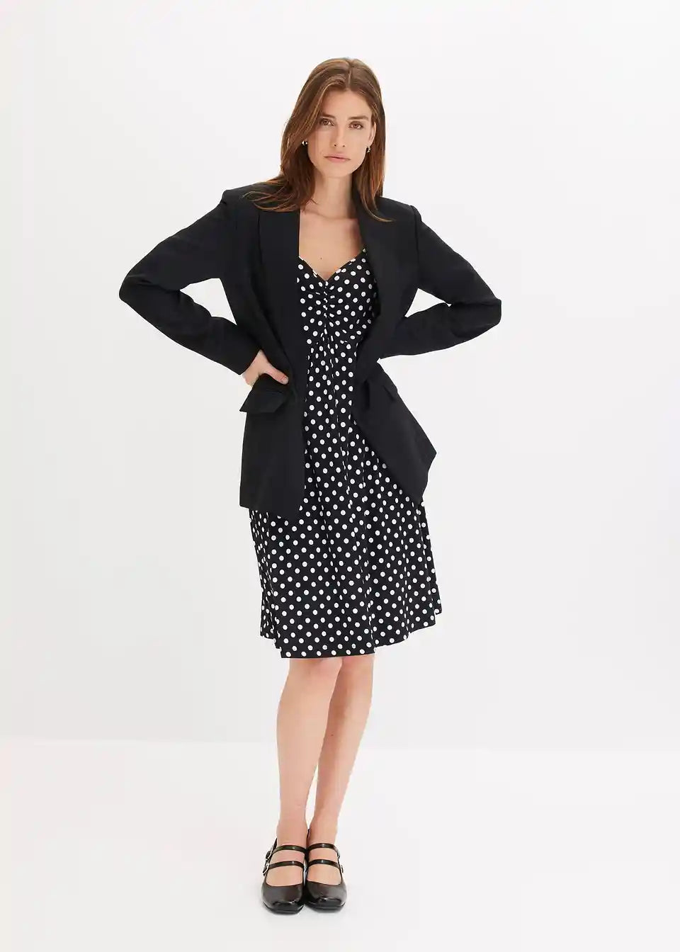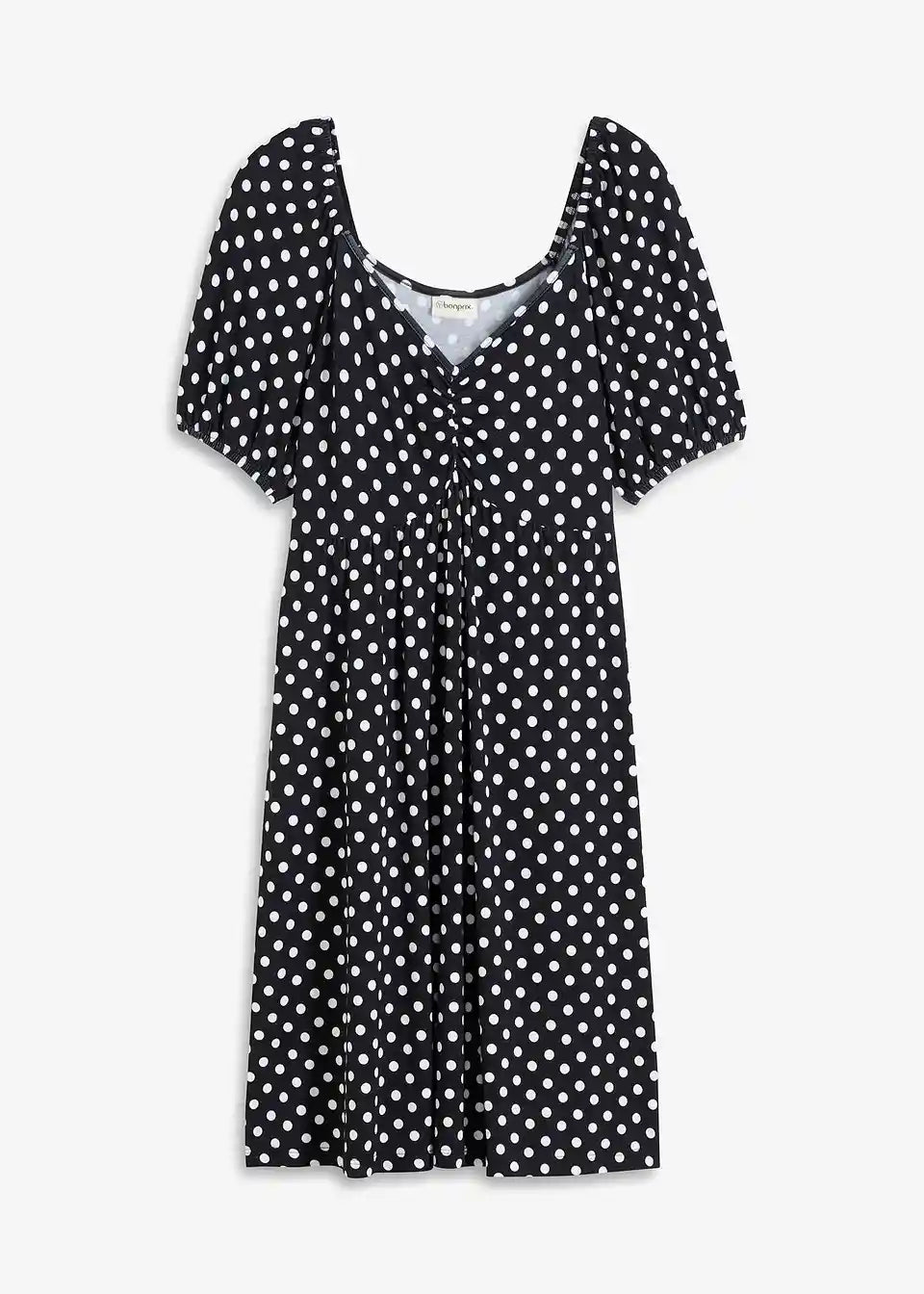 Lepršava haljina s točkicama, srcolikim izrezom i puff rukavima