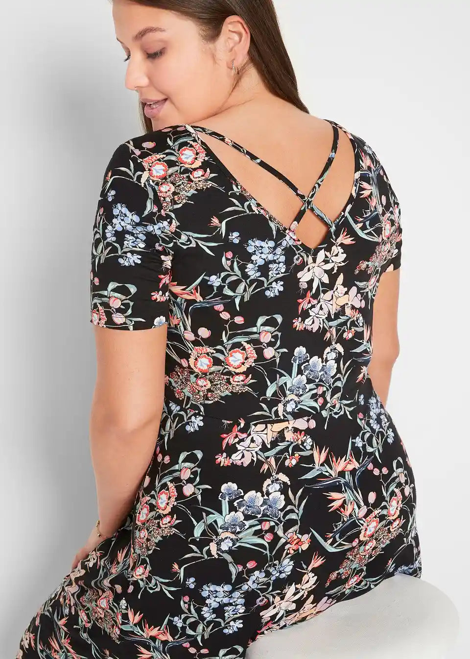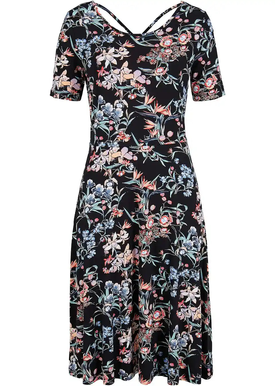 Figuru laskava jersey haljina A-kroja s prekriženim trakama na stražnjem izrezu