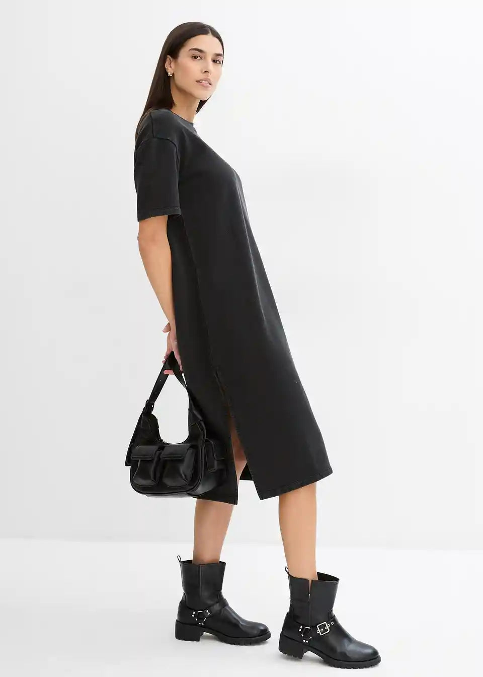 Midi košulja-haljina s prorezima u lagano ispranom izgledu