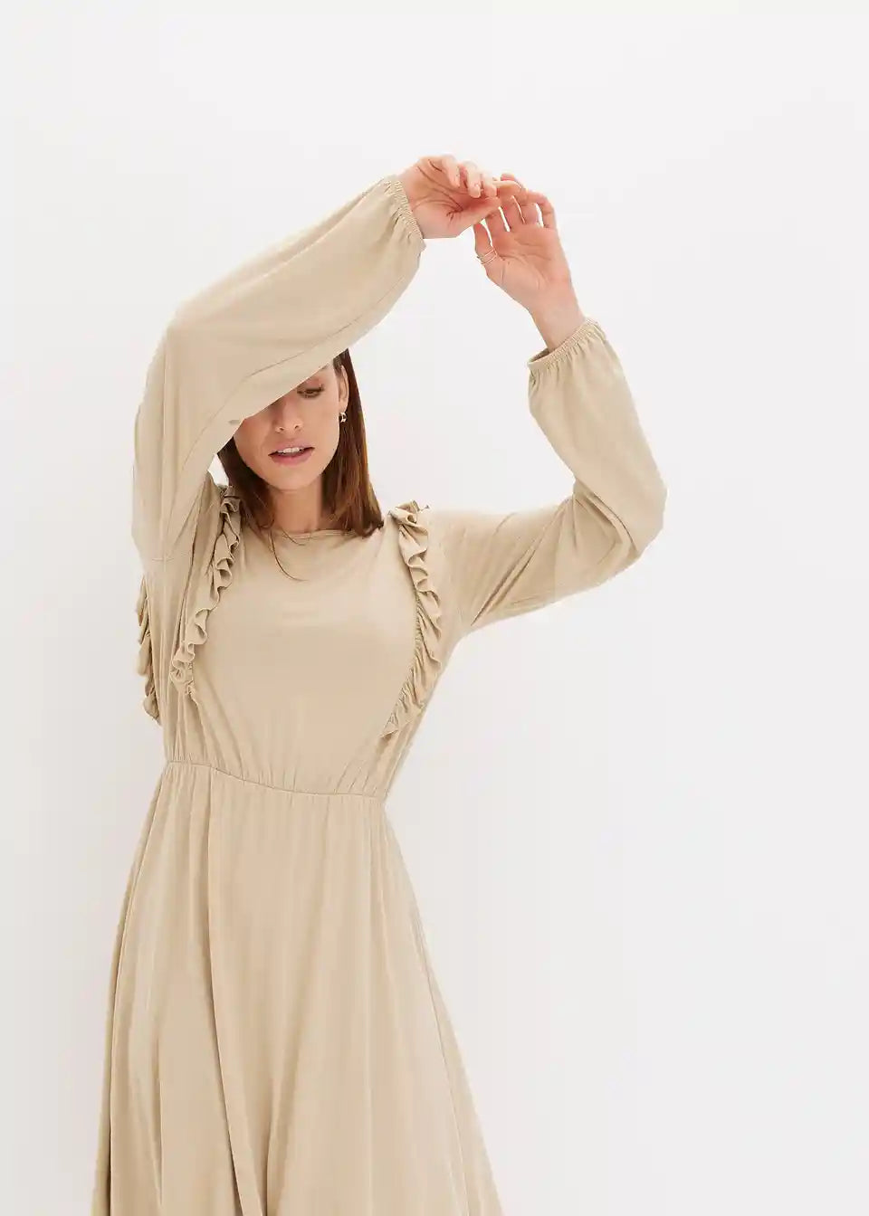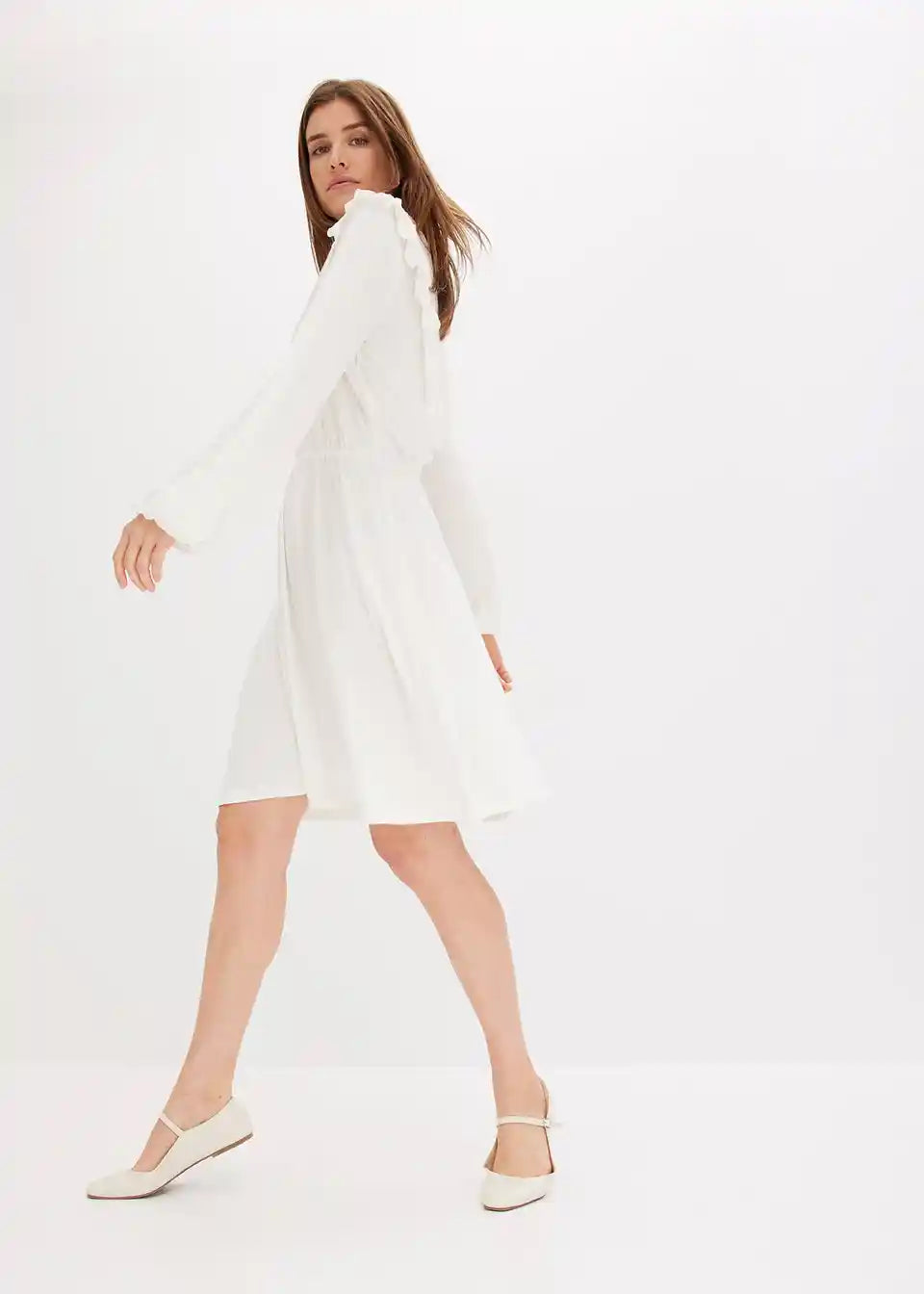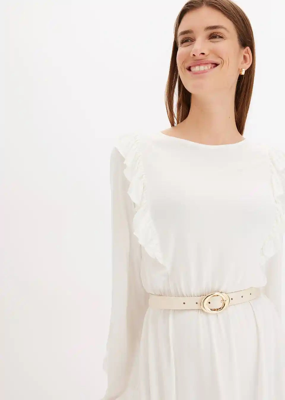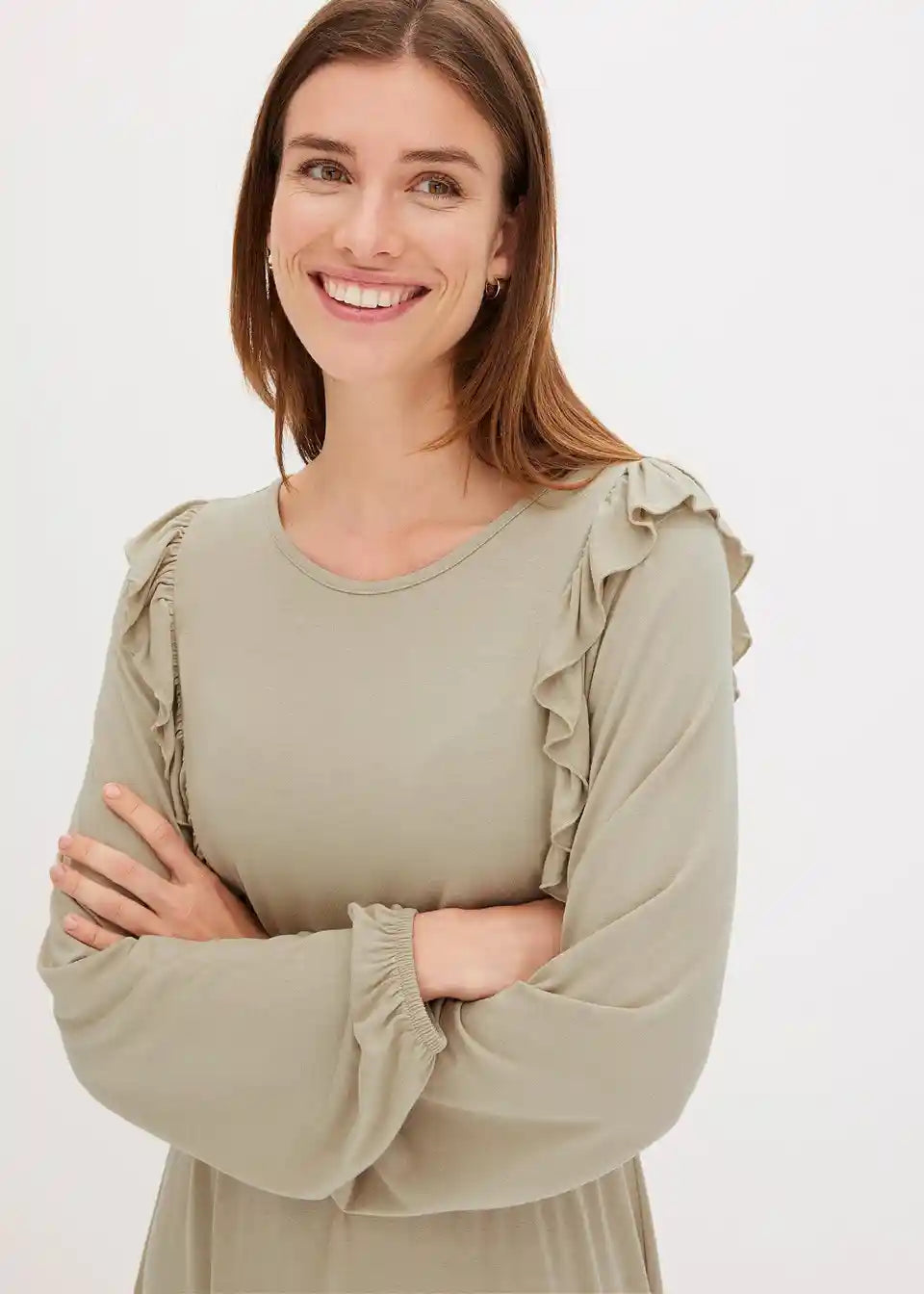 Lepršava majica-haljina s volanima i napuhanim rukavima