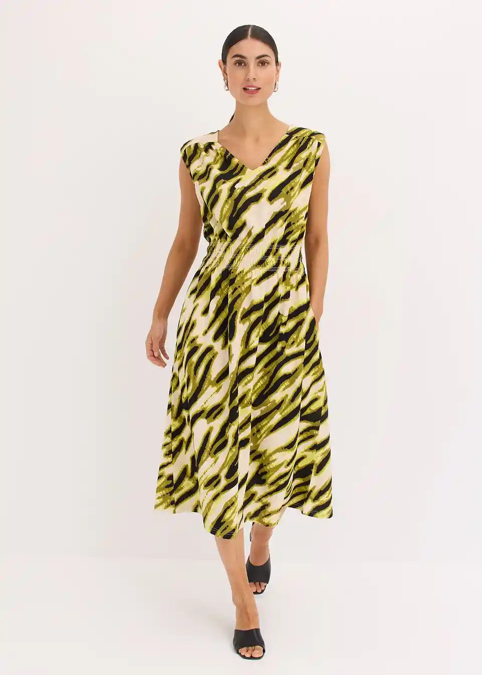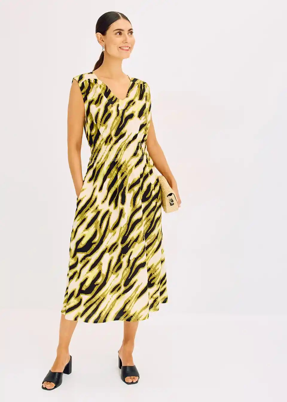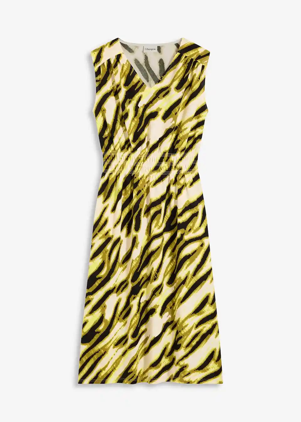 elegantna jerseykleid sa smock detaljima u zebra uzorku