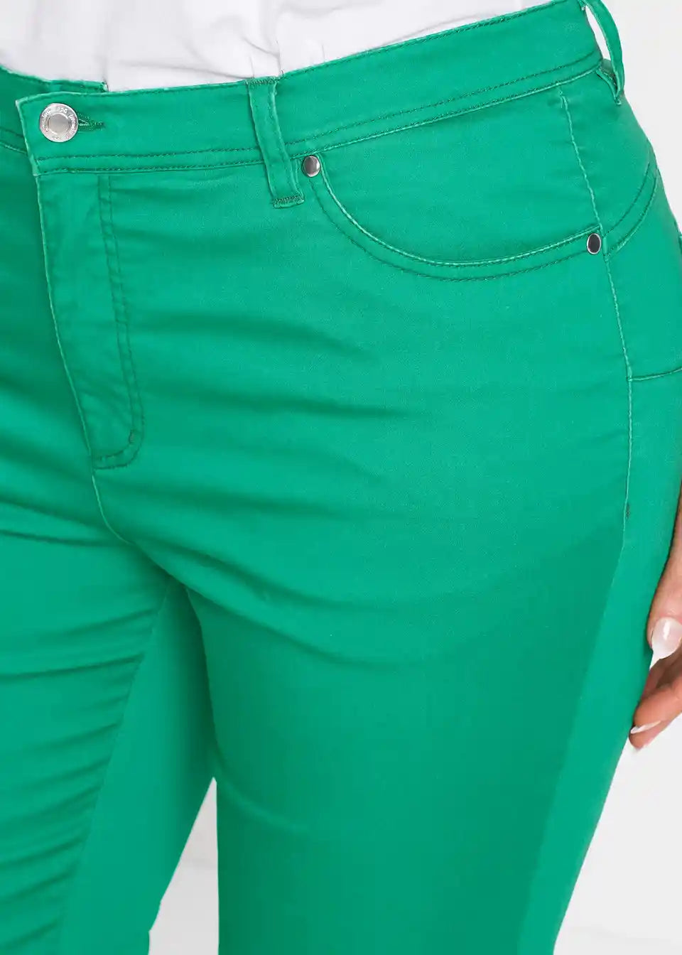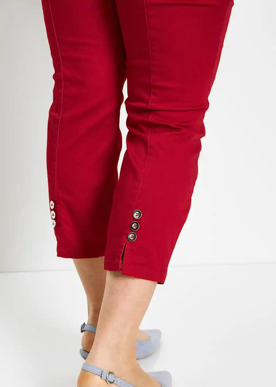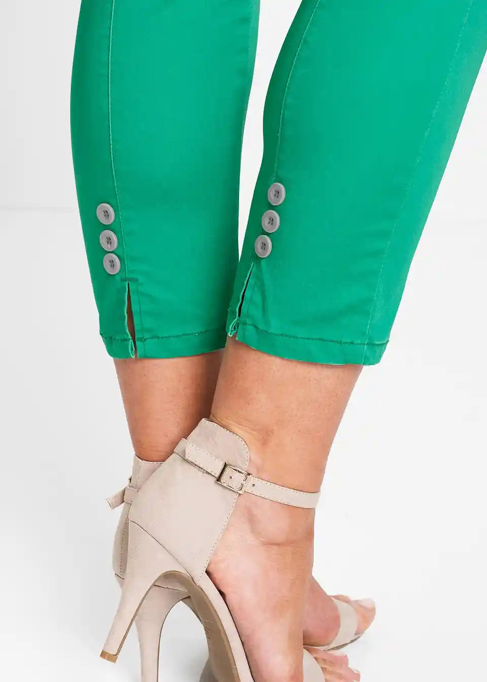S izvrsnim pristajanjem, stražnjim dijelom s Push-Up efektom i malim ukrasnim gumbima na kraju nogavica, duljina od cca 66 cm (vel. 36) do cca 62,9 cm (vel. 54), perivo u perilici,