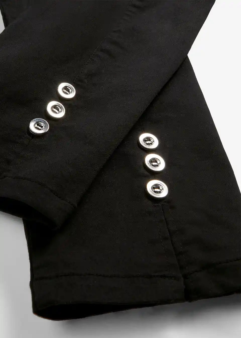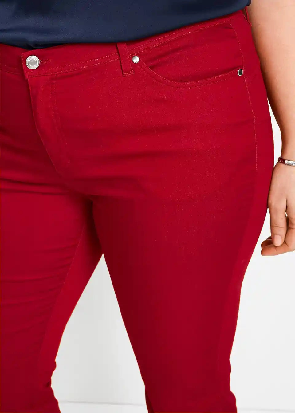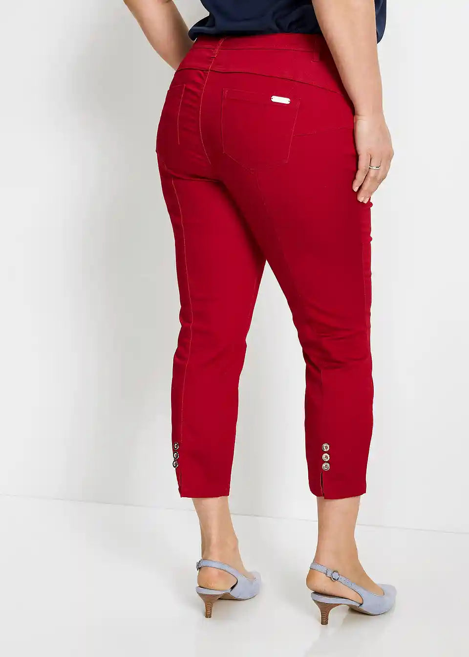 S izvrsnim pristajanjem, stražnjim dijelom s Push-Up efektom i malim ukrasnim gumbima na kraju nogavica, duljina od cca 66 cm (vel. 36) do cca 62,9 cm (vel. 54), perivo u perilici,