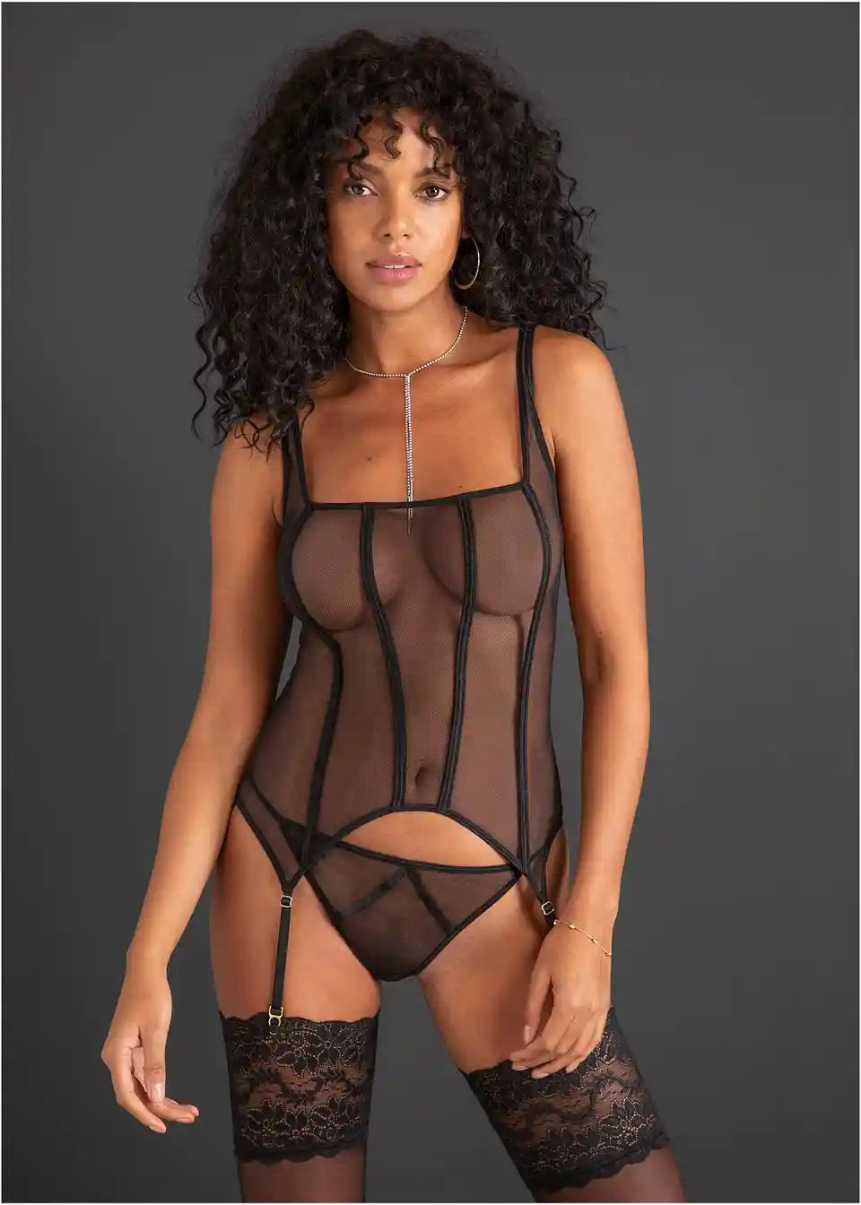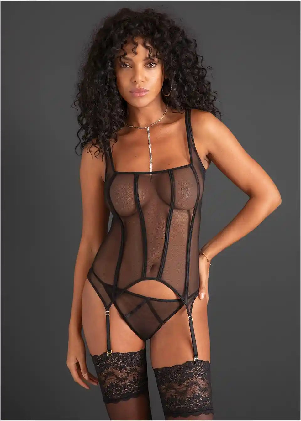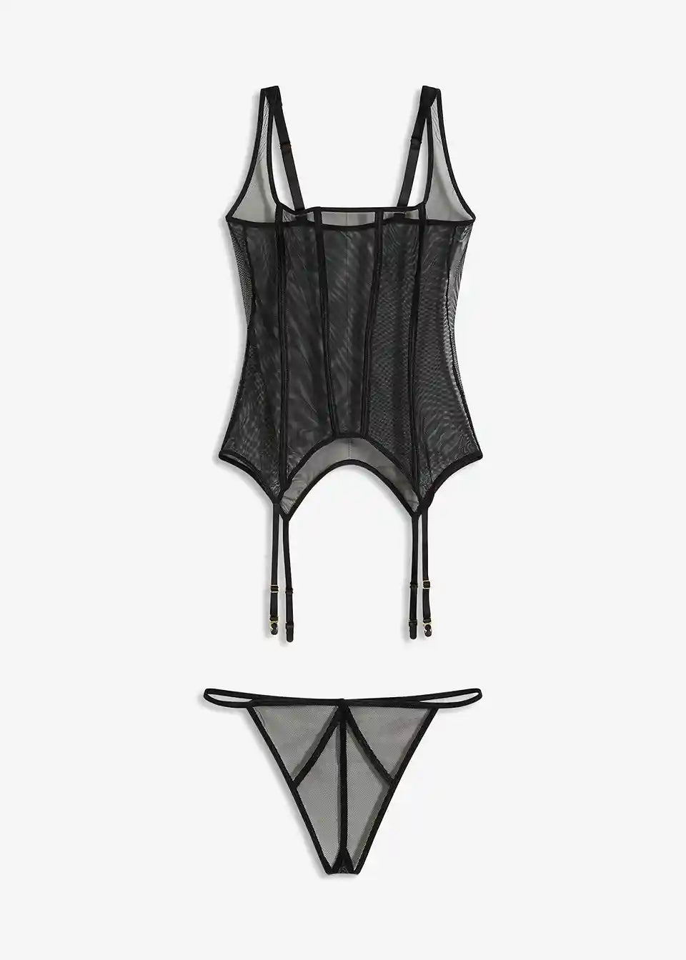 Korzet s pojasom s držačima za čarape i tanga gaćice