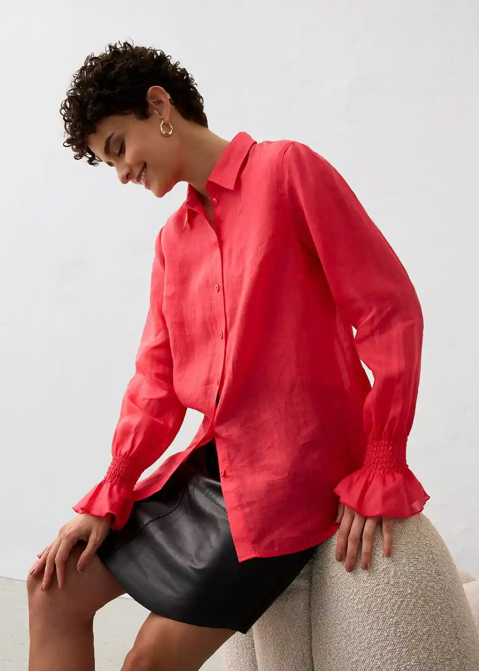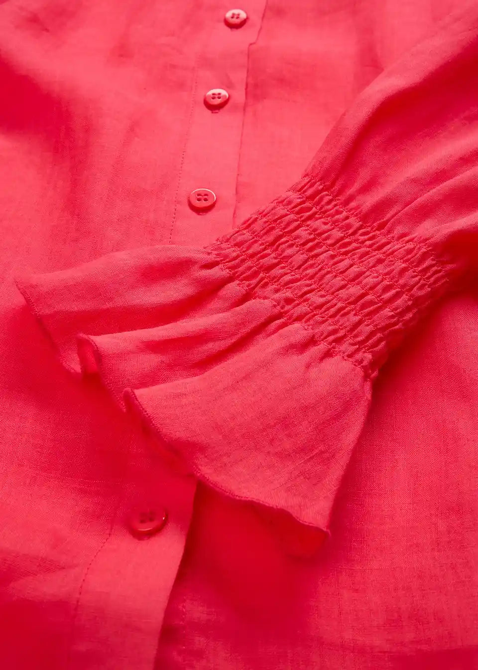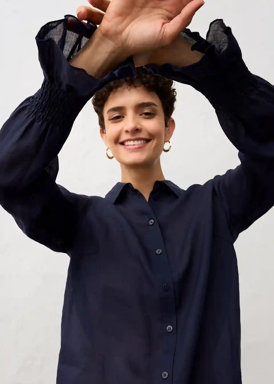 udobna košulja-bluza od ramije s naborima na rukavima, lagano prozirna