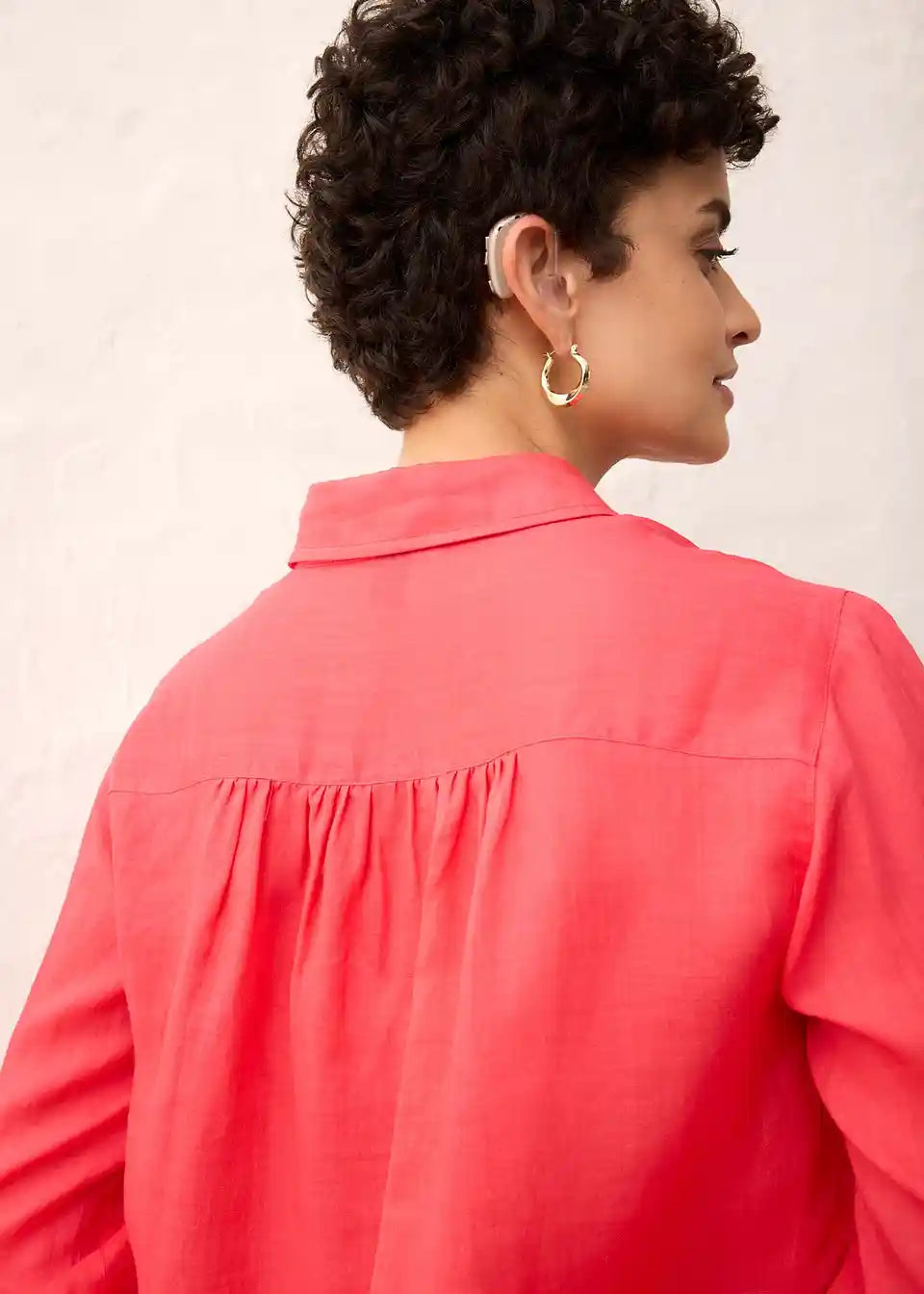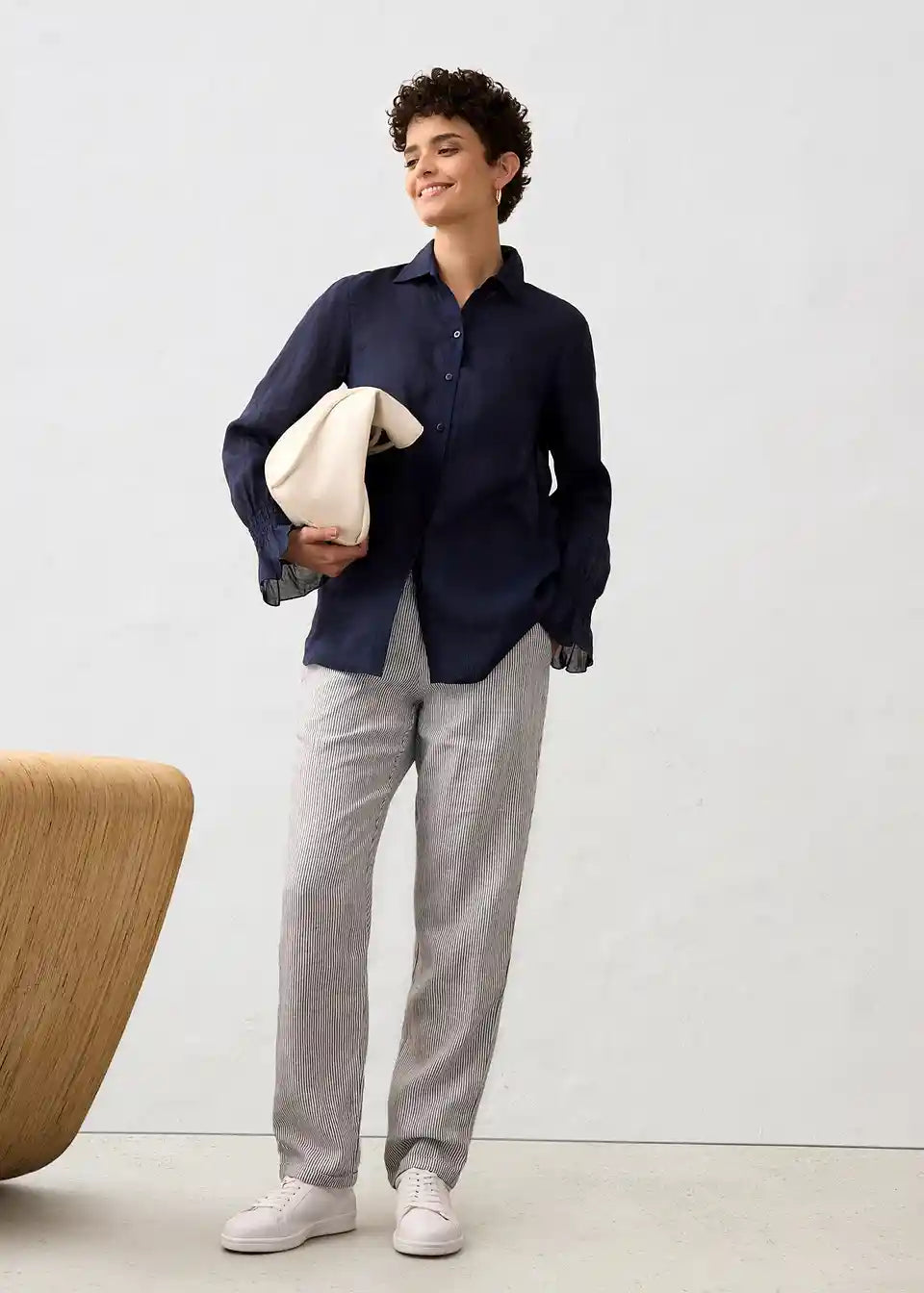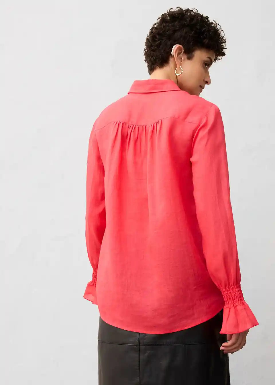 udobna košulja-bluza od ramije s naborima na rukavima, lagano prozirna