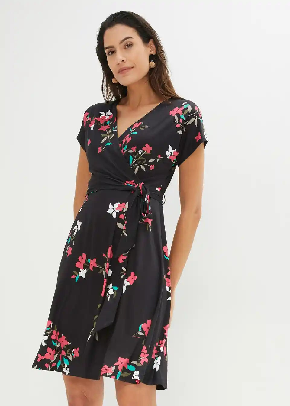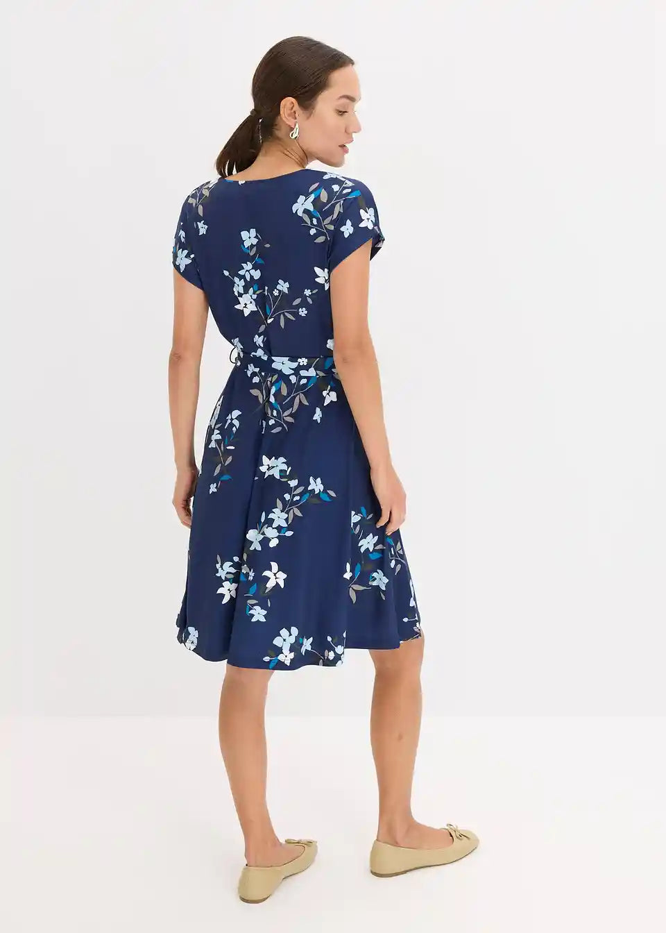 Lepršava haljina s uzorkom po cijeloj površini i pojasom na vezanje