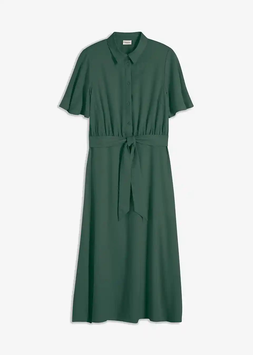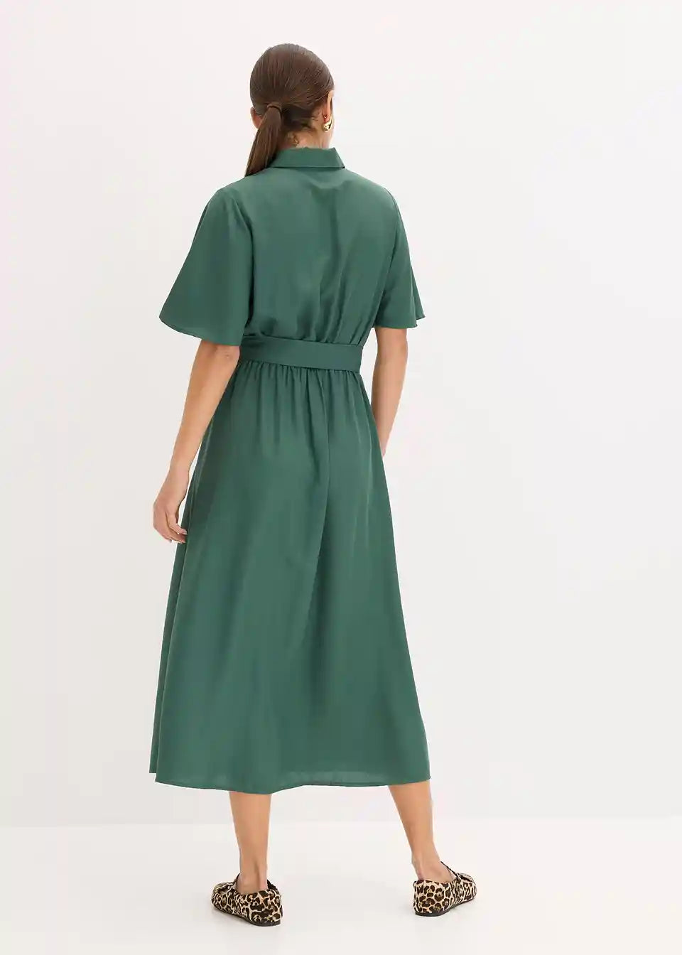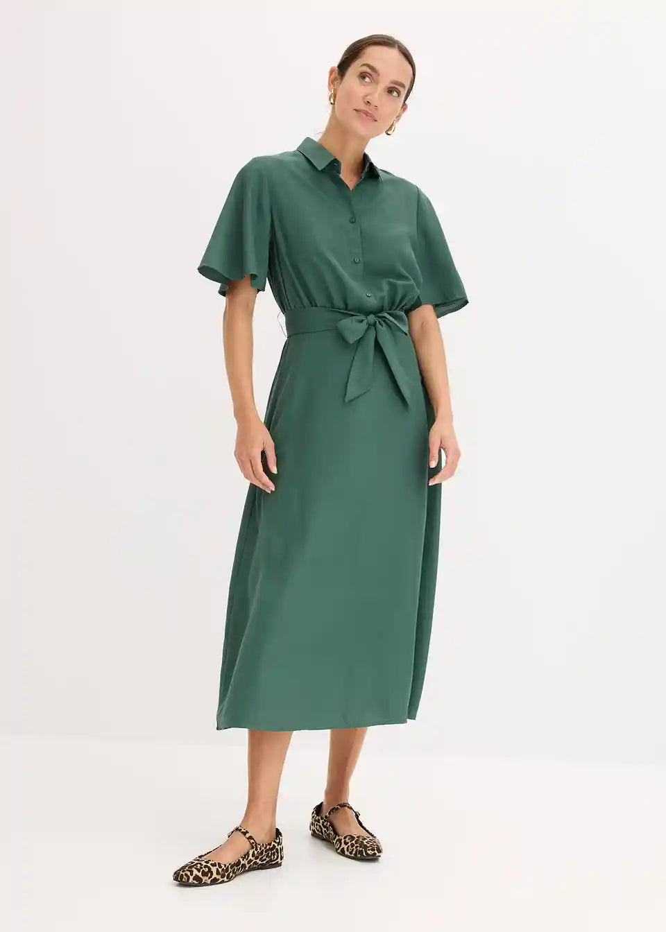 ženstvena košulja haljina midi dužine s vezicom u struku