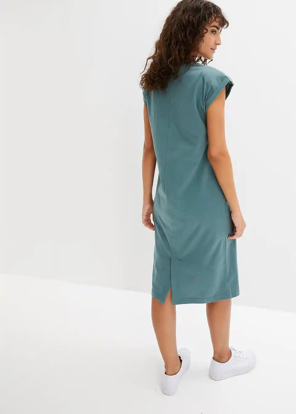 Ležerna košulja-haljina s okruglim izrezom i ramenim jastučićima