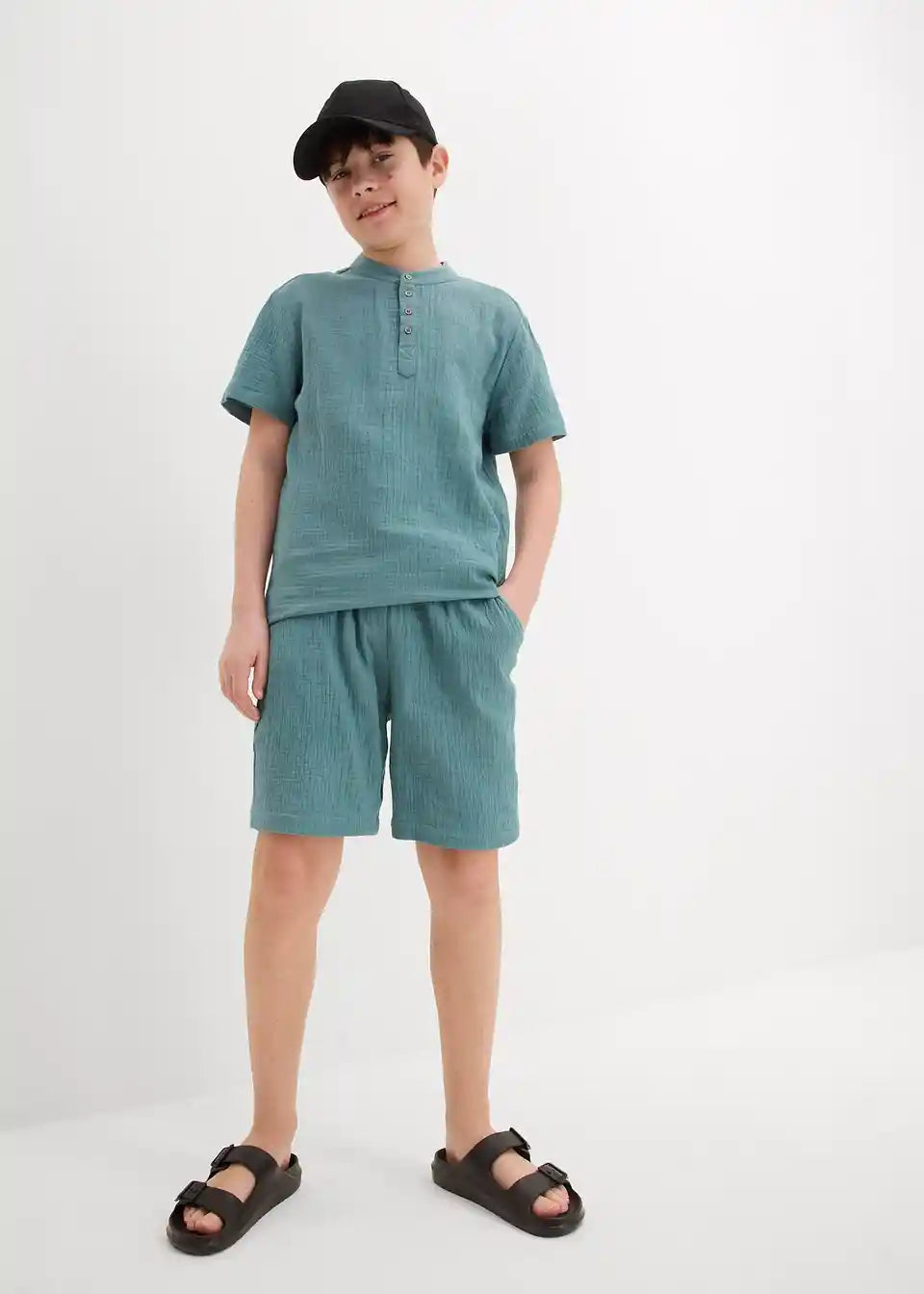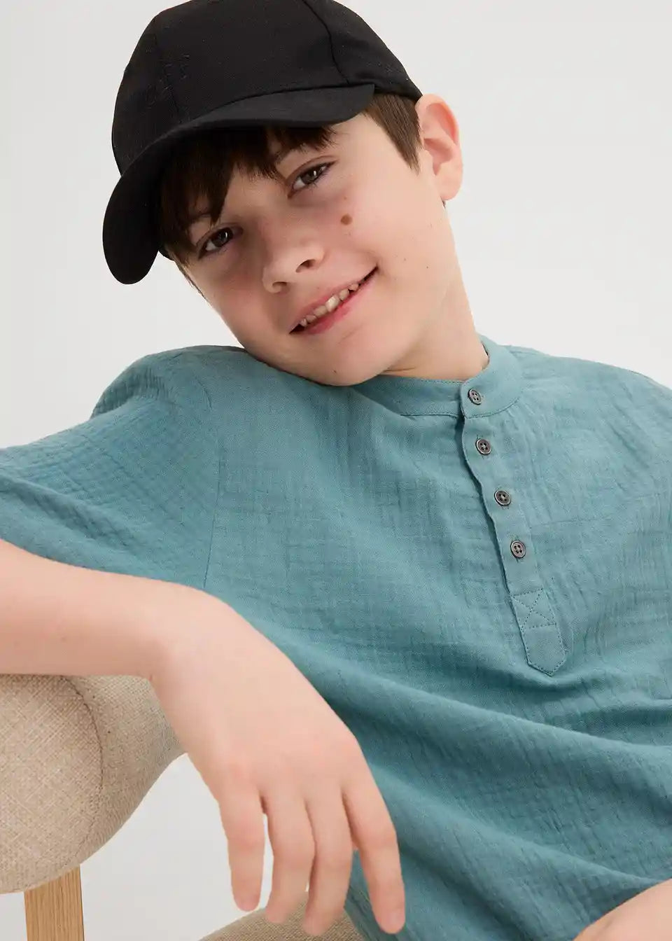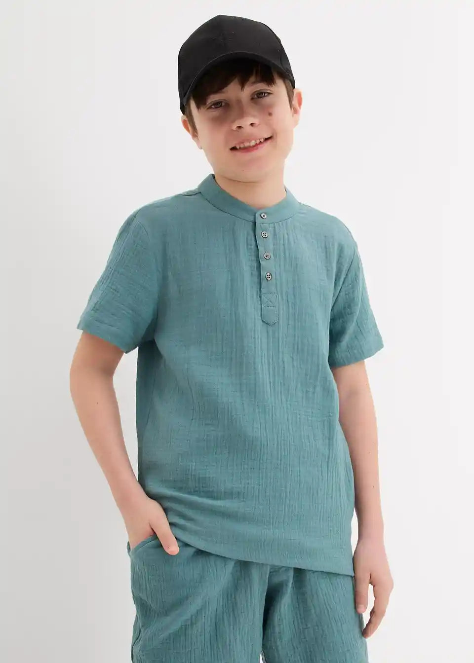 Ljetna dječačka košulja s kratkim rukavima i skraćenom dugmadi
