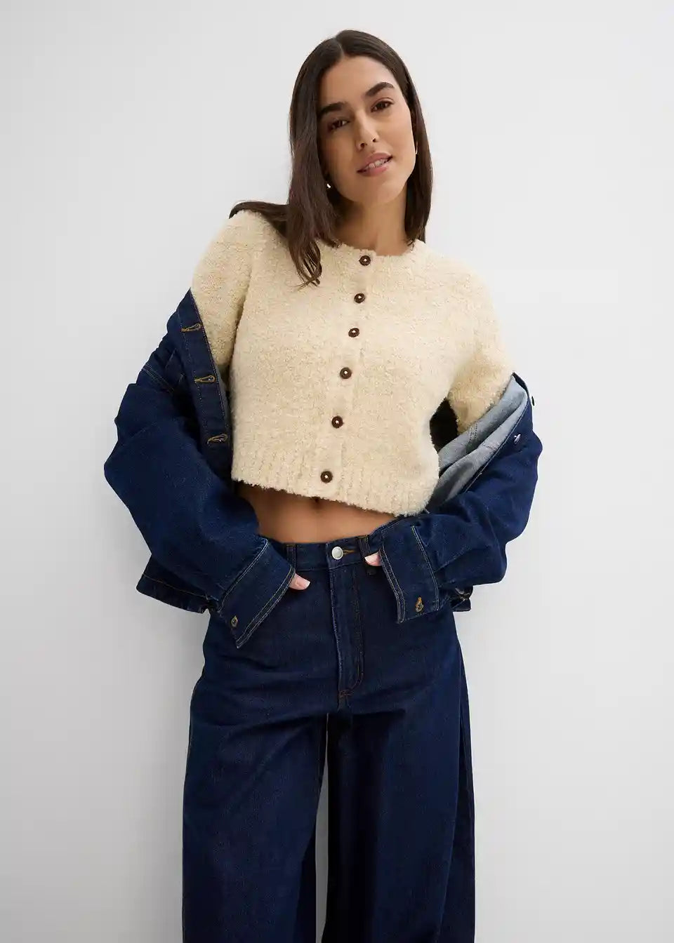 Ležerni pleteni kardigan s kopčanjem, kratkog kroja