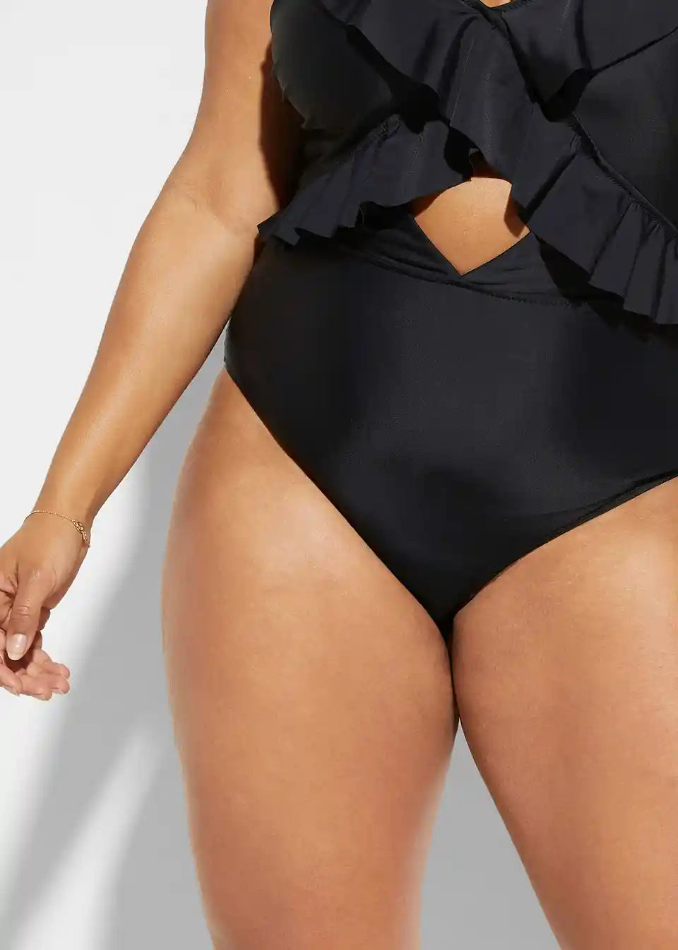 Ženski kupaći kostim s atraktivnim volanom i izrezom
