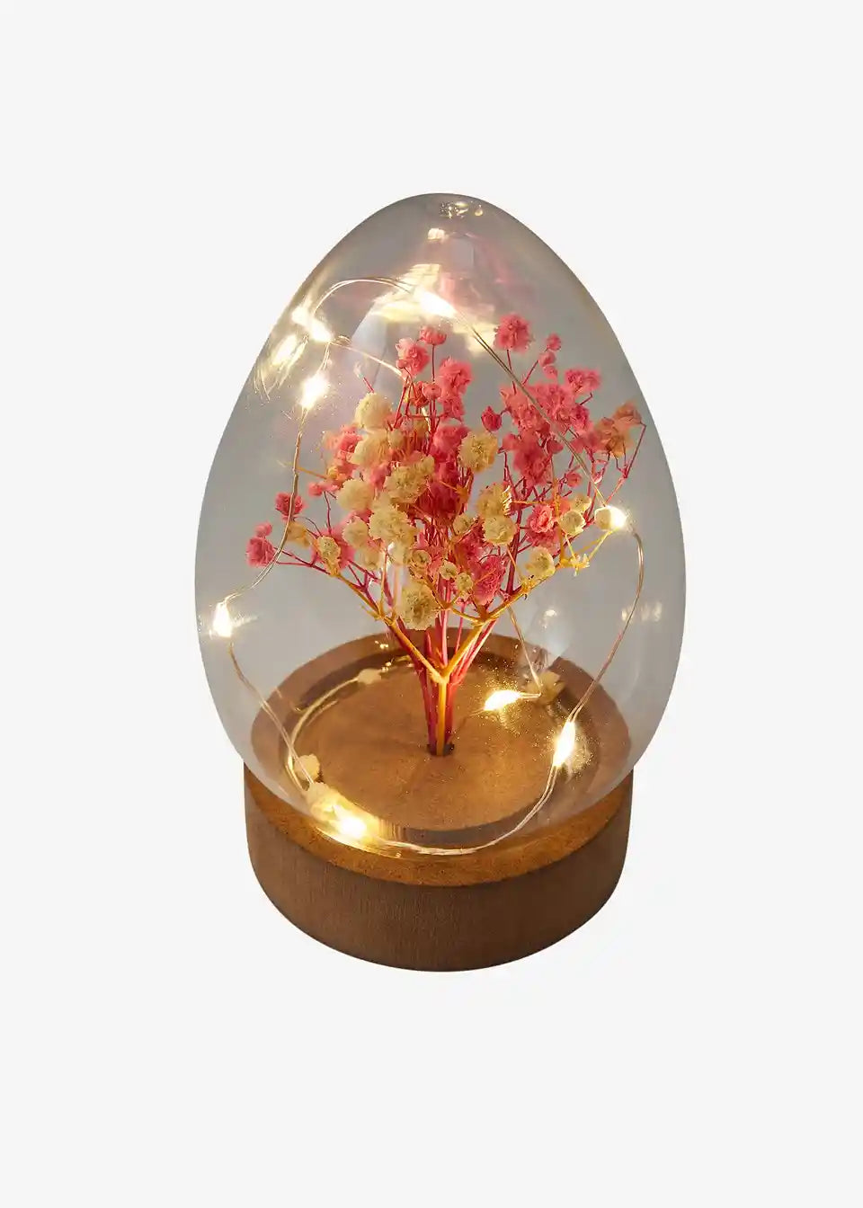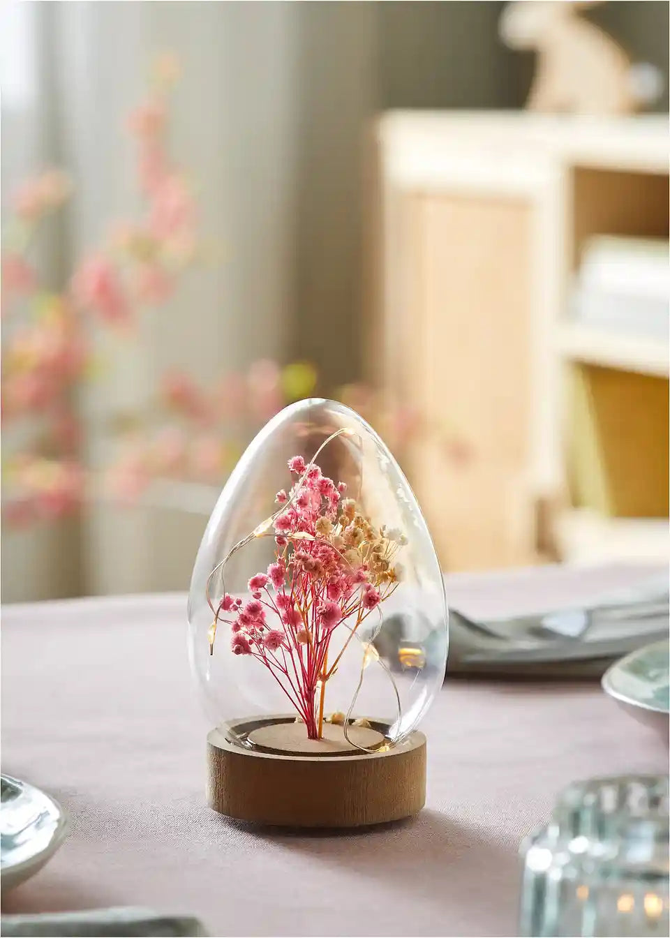 Originalna uskršnja dekoracija - jaje sa suhim cvijećem i ugodnim LED osvjetljenjem. Privlači poglede u svakom životnom prostoru tijekom uskršnjeg vremena. Uključuje 2xCR2032 baterije.