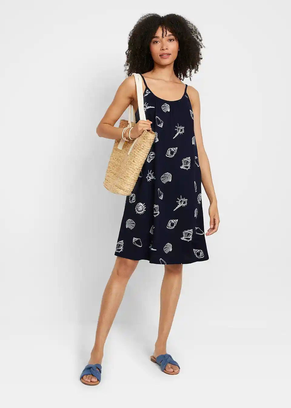 Ljetna lepršava jersey haljina sa špageti naramenicama i printom, A-kroja