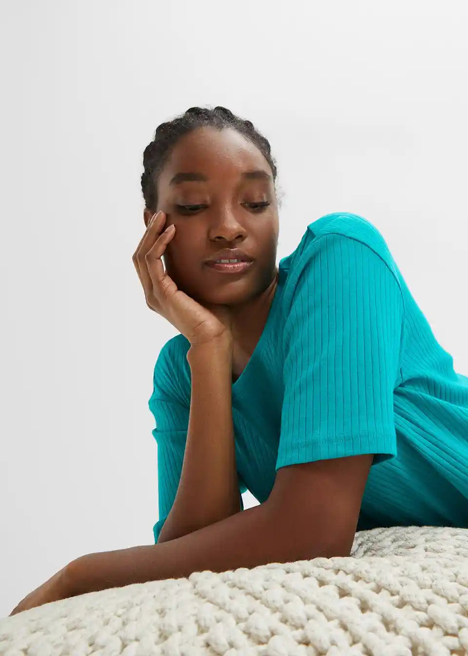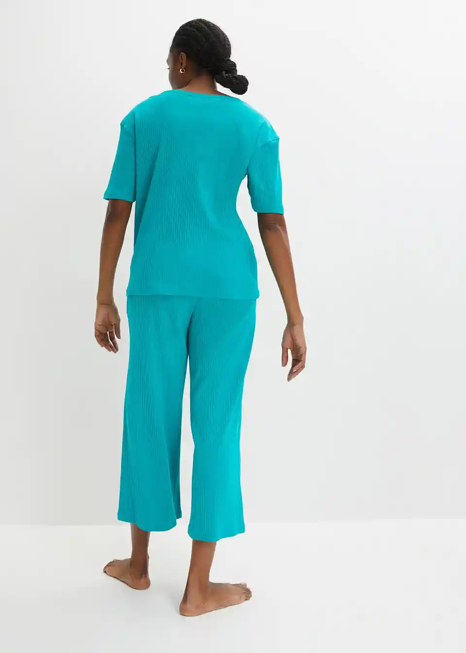 Udobno kućno odijelo od rebrastog materijala s culotte hlačama