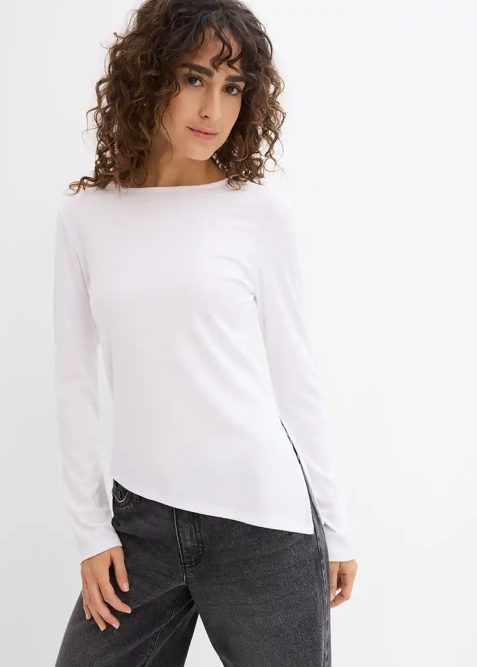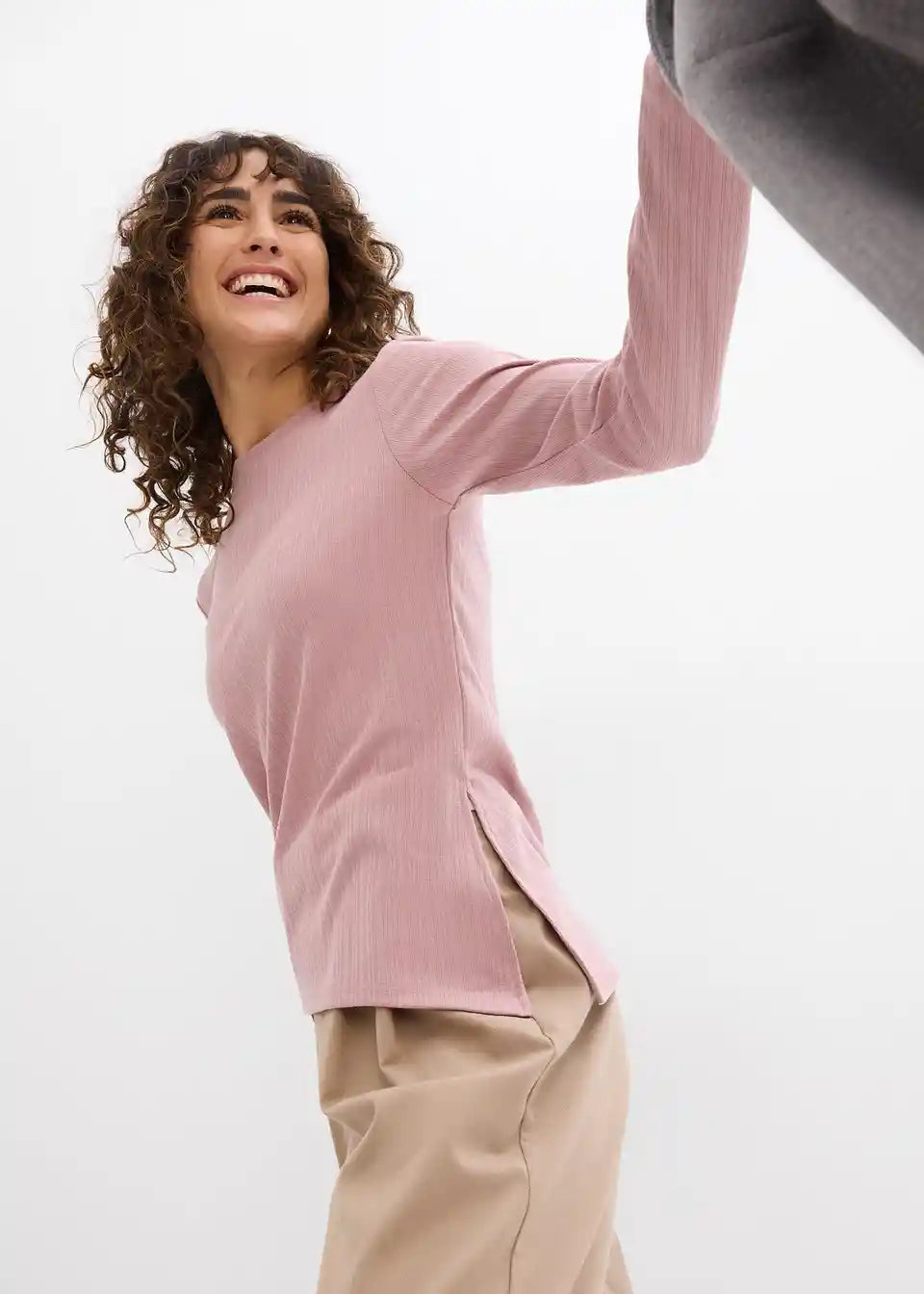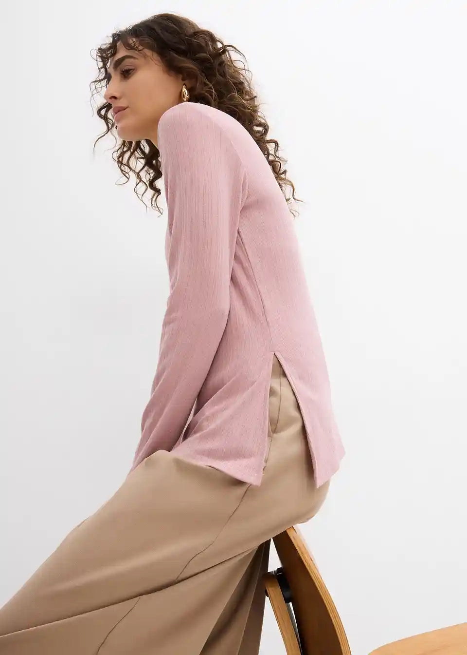 Majica s dugim rukavima od rebrastog materijala s prorezom