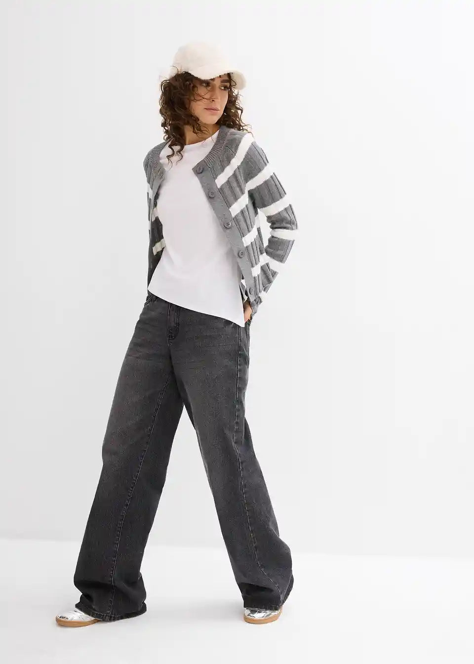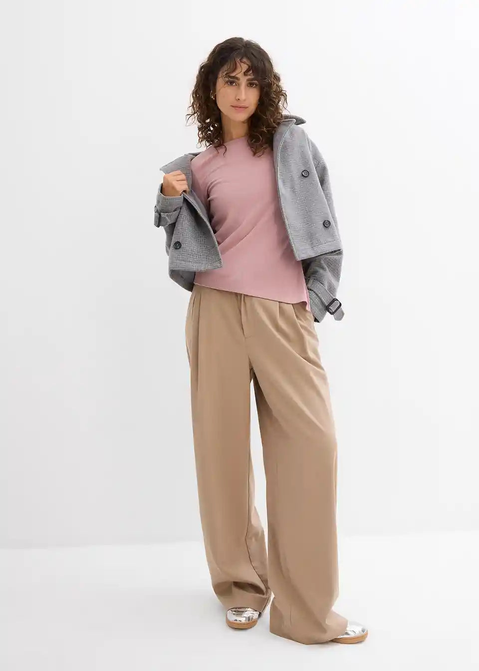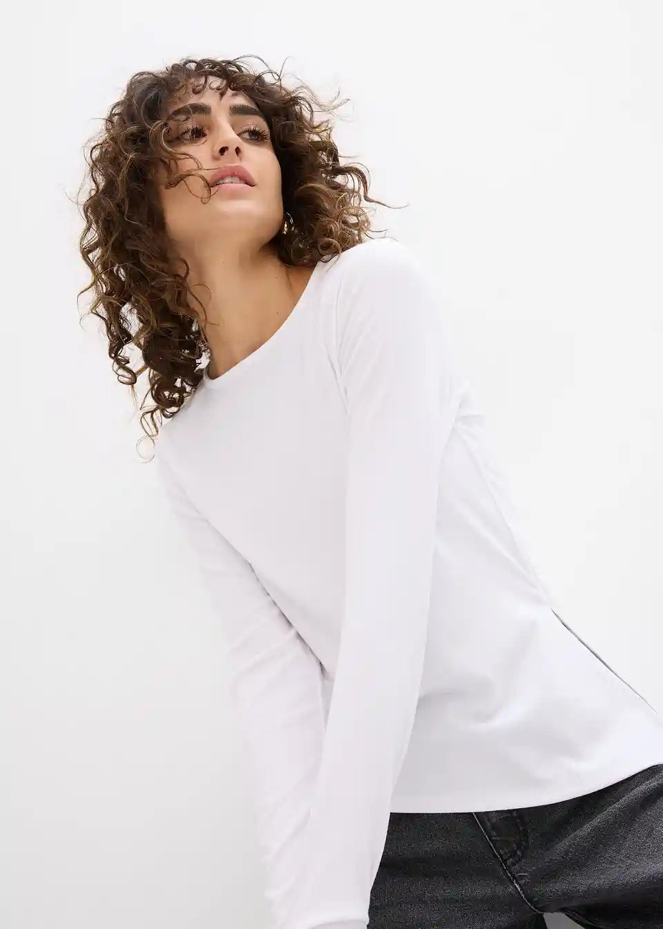 Majica s dugim rukavima od rebrastog materijala s prorezom