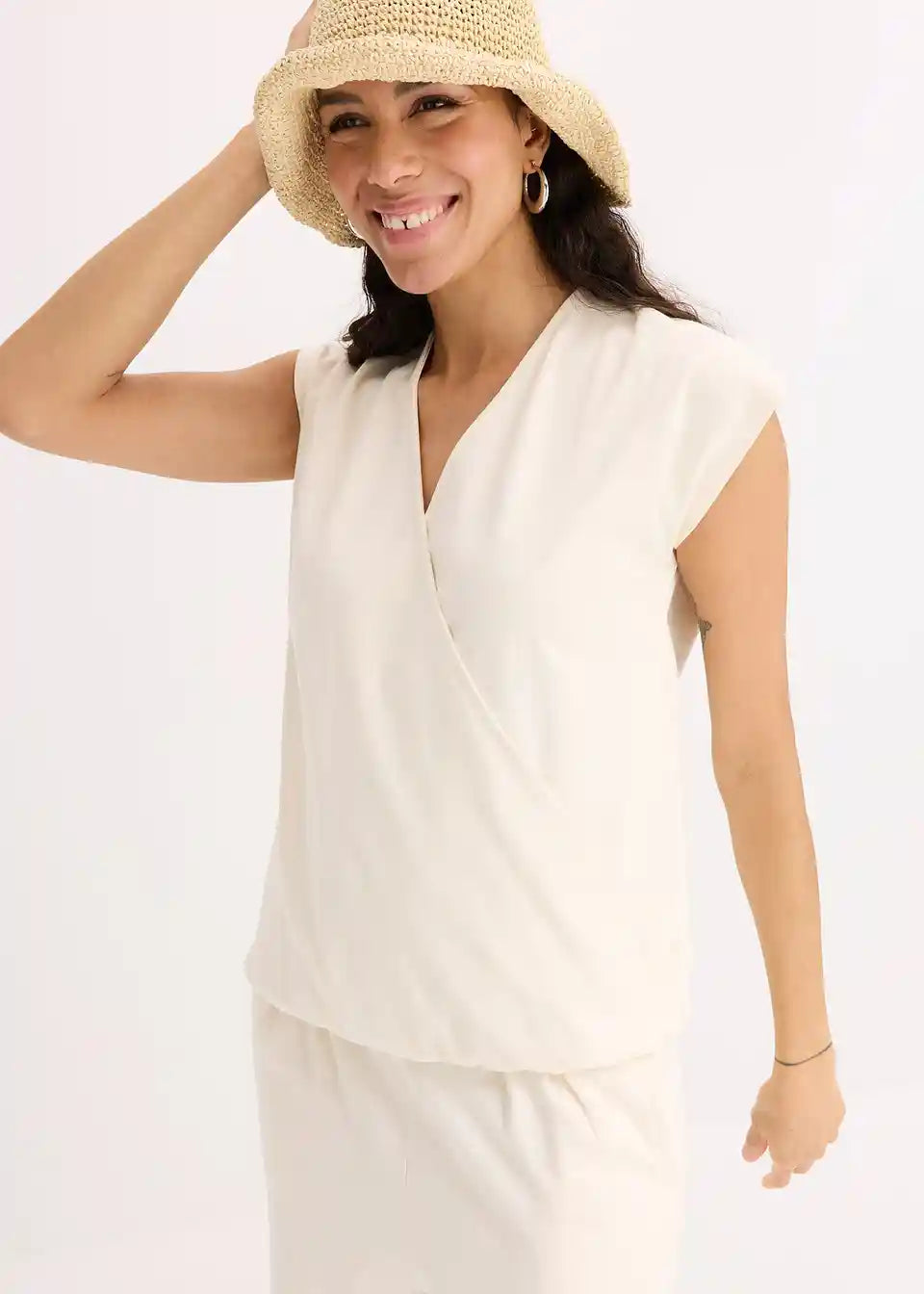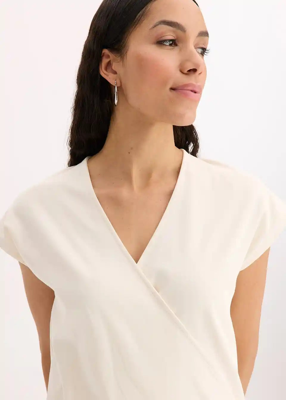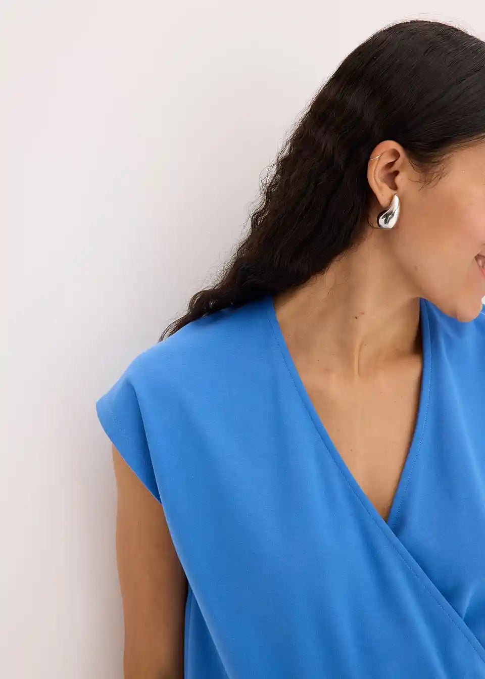 Lagana majica s izgledom preklopa i udobnim elastičnim rubom.