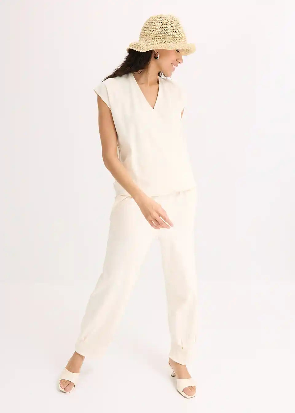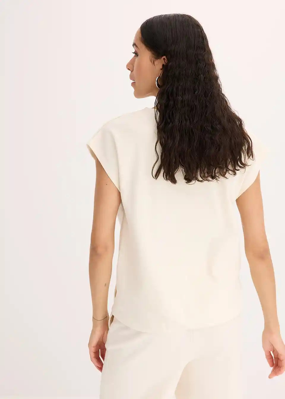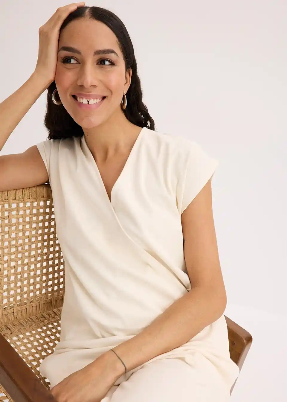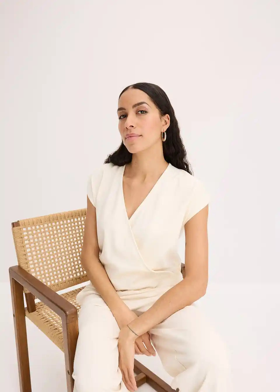 Lagana majica s izgledom preklopa i udobnim elastičnim rubom.