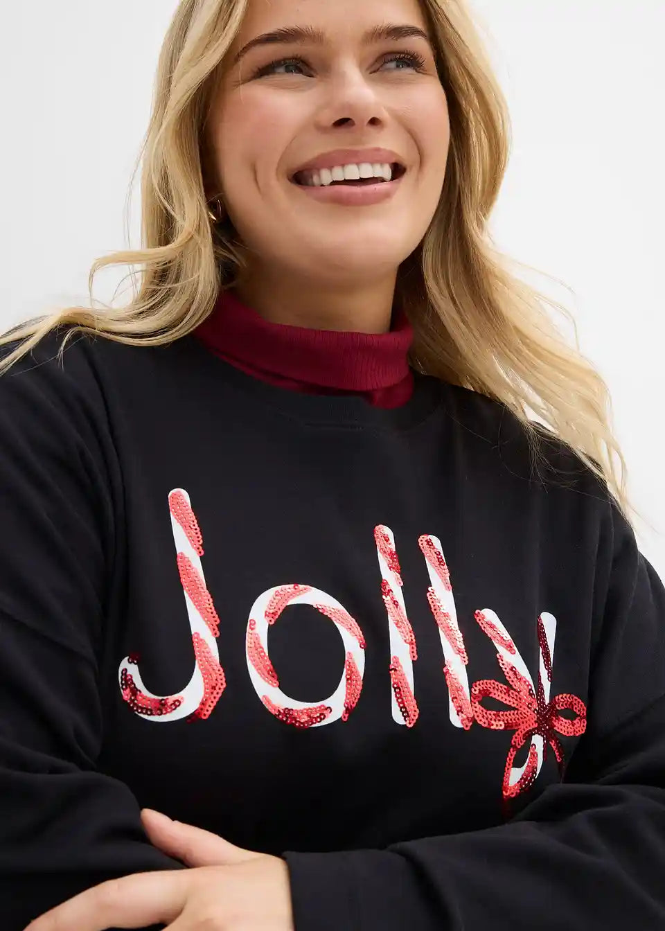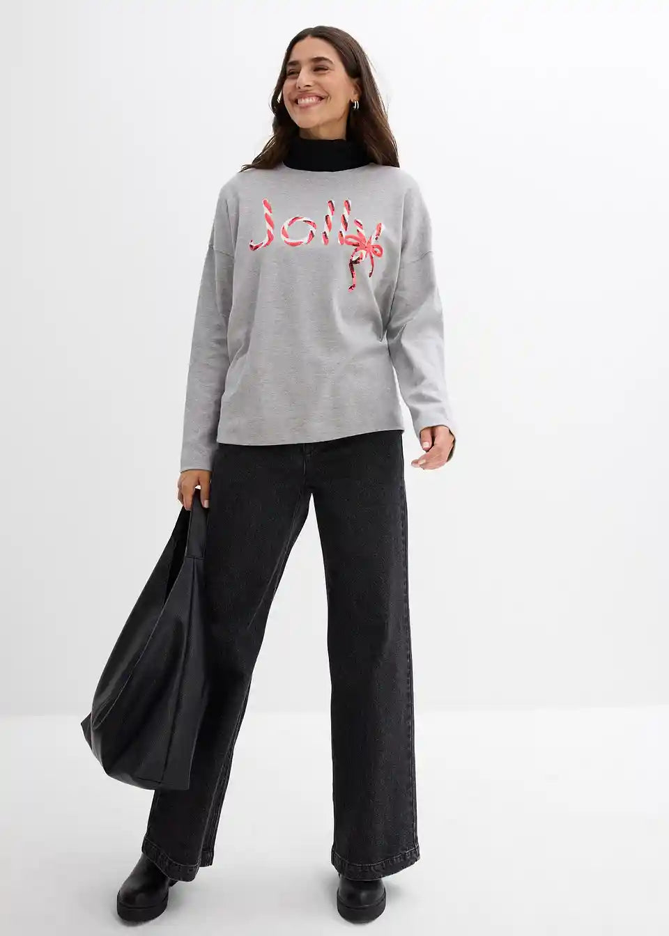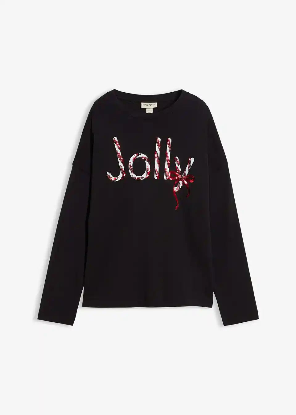 Božićni pamučni longsleeve s okruglim izrezom i natpisom s šljokicama
