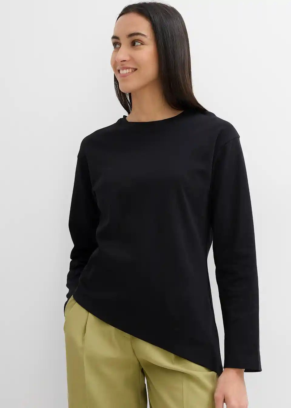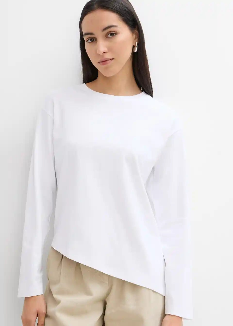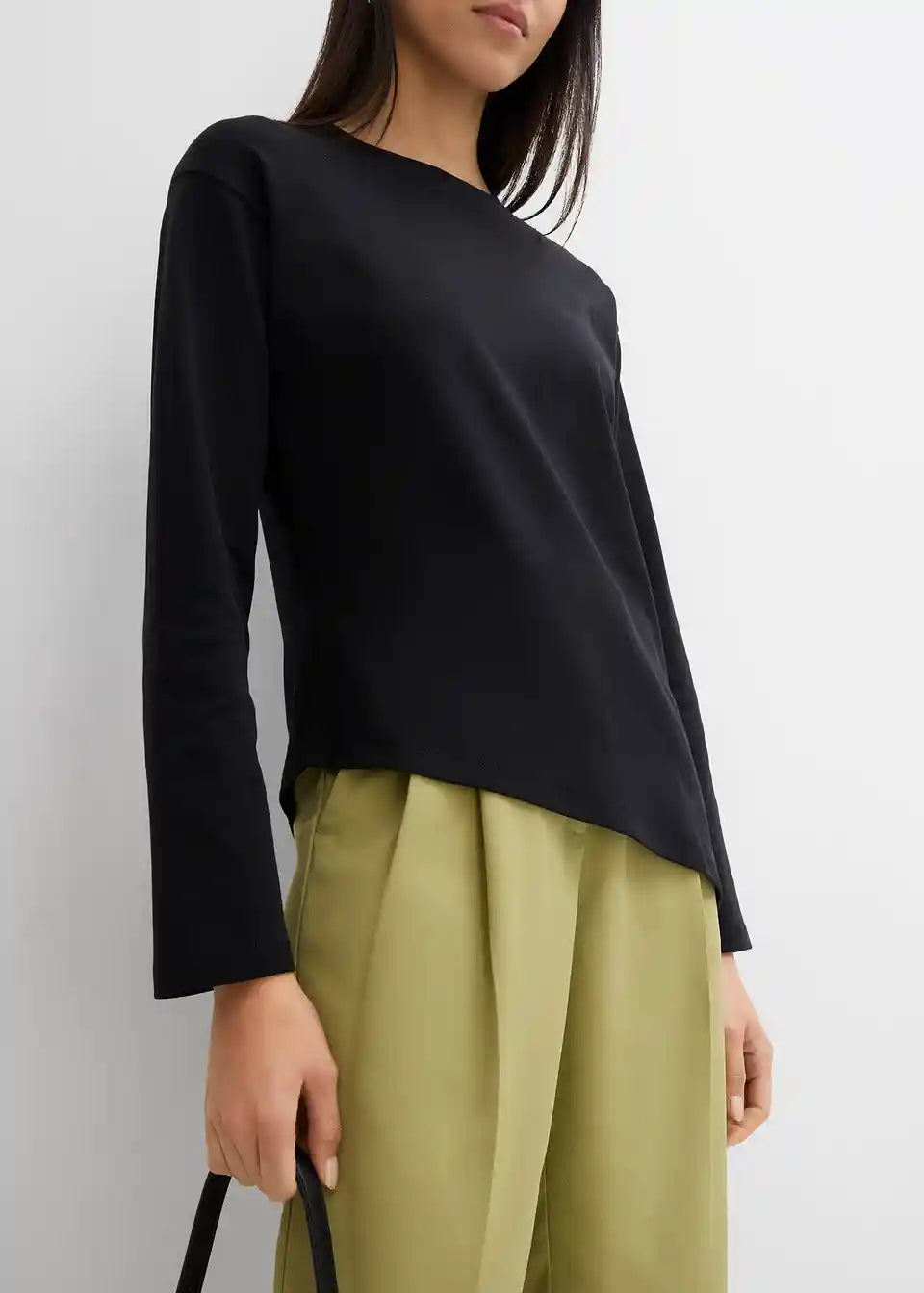 Majica s dugim rukavima s asimetričnim rubom od pamuka