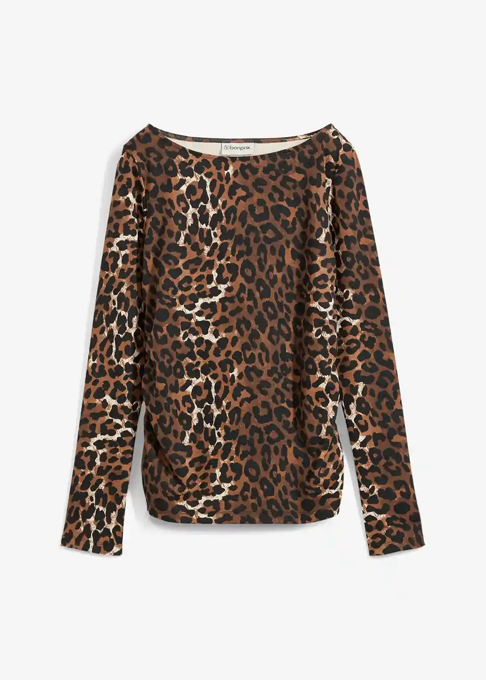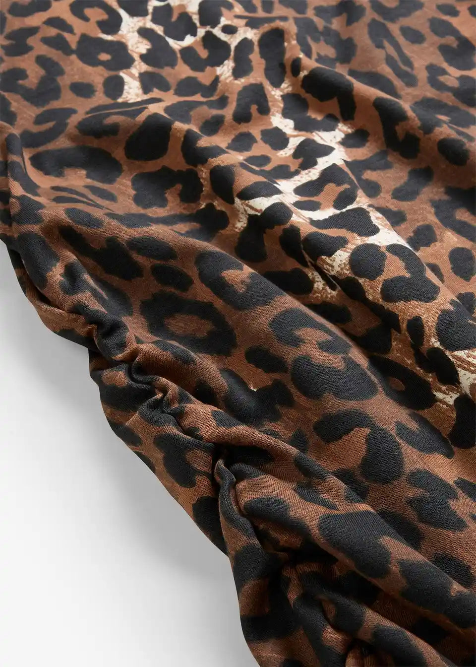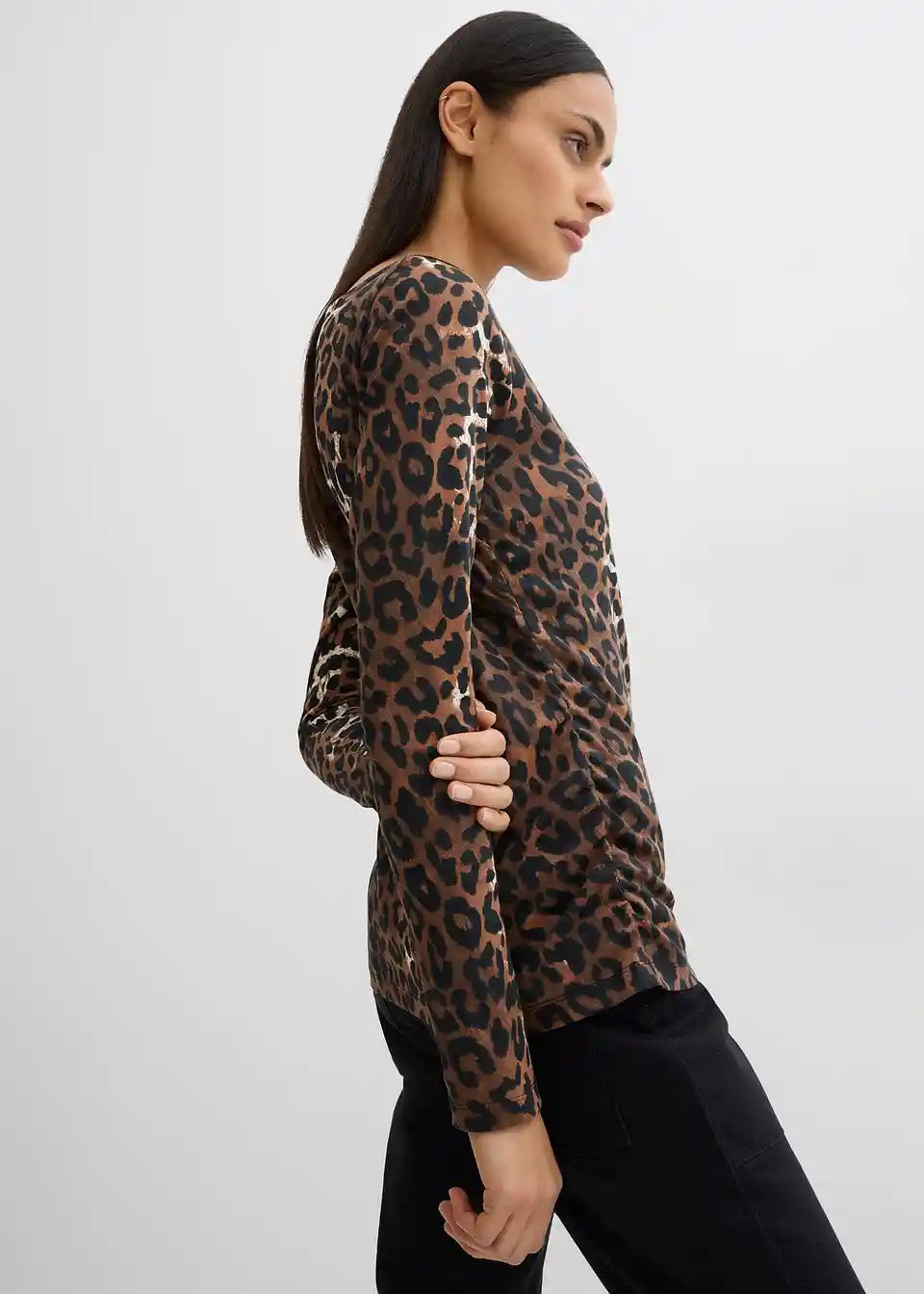 Trendy majica s dugim rukavima s naborima i leopard uzorkom