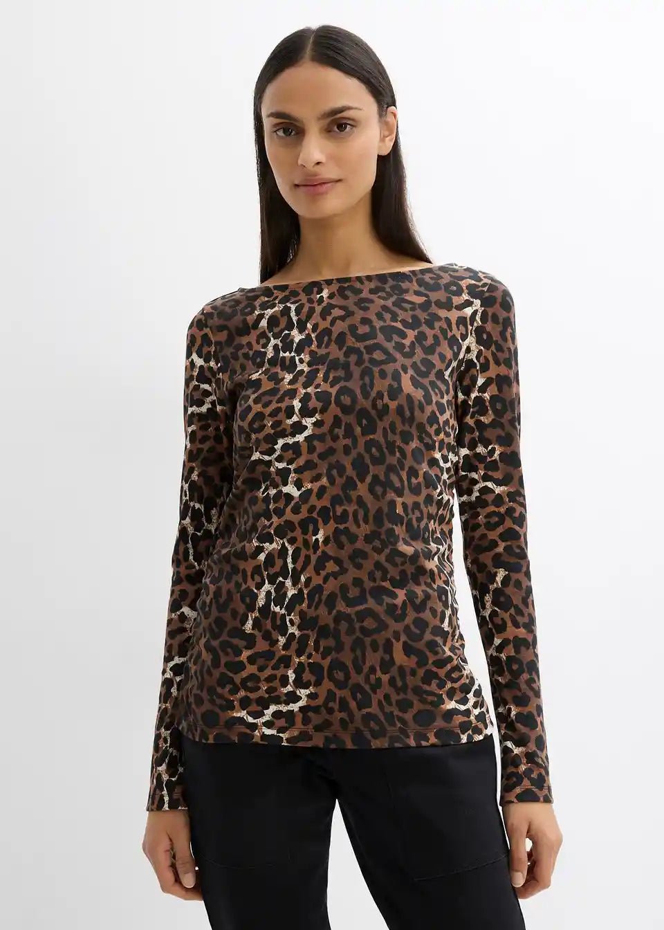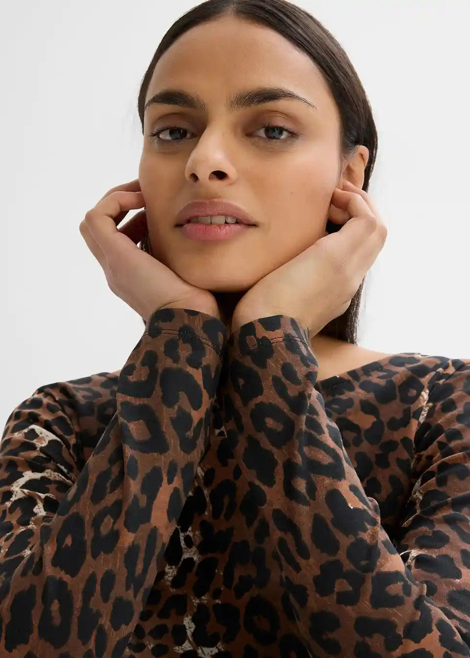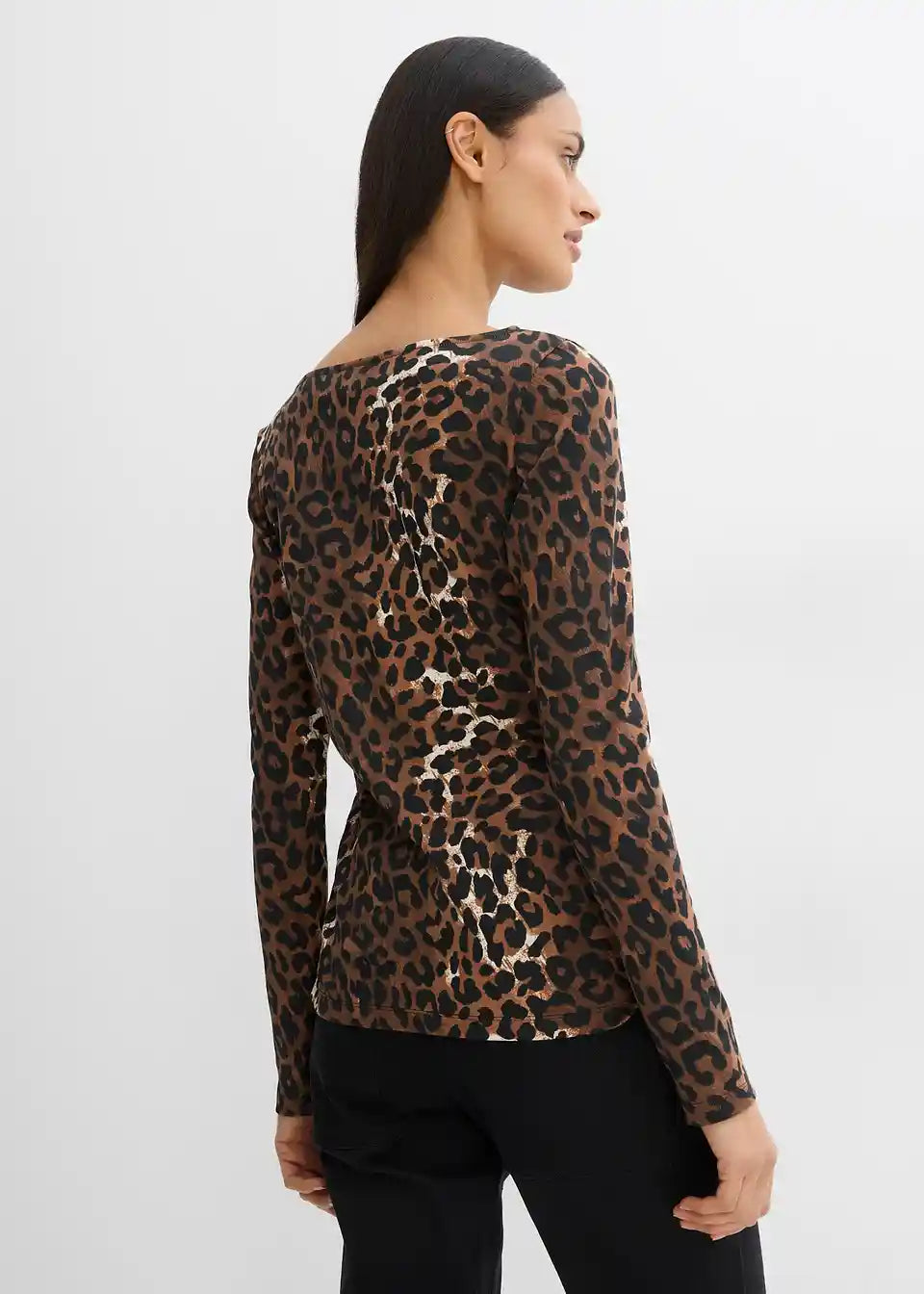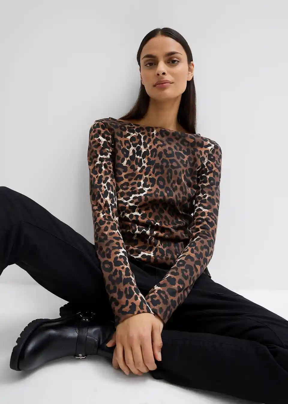 Trendy majica s dugim rukavima s naborima i leopard uzorkom