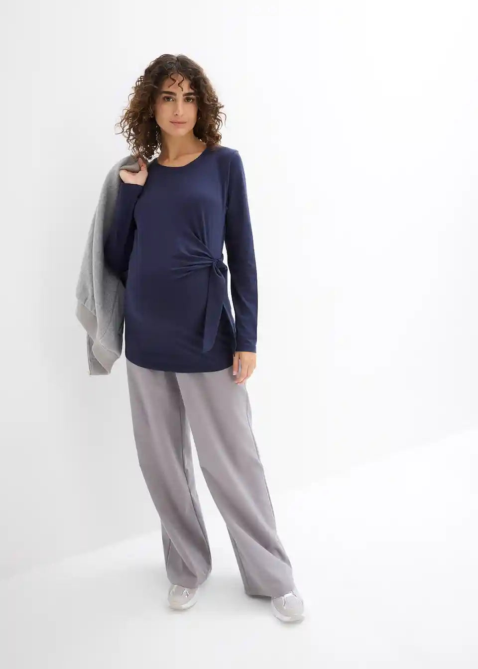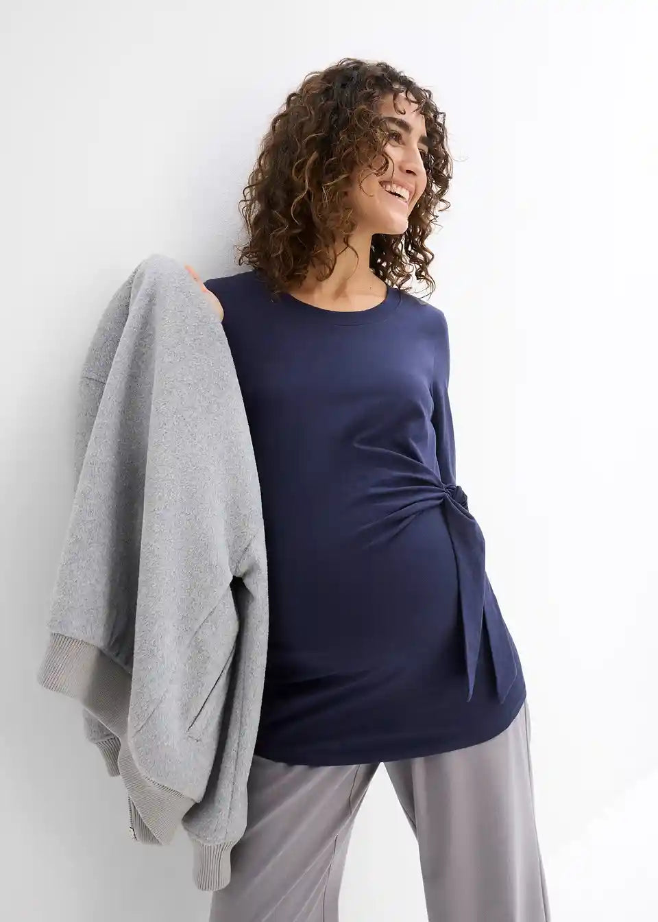 Dugorukavna majica za trudnice s detaljem čvora od organske pamuke