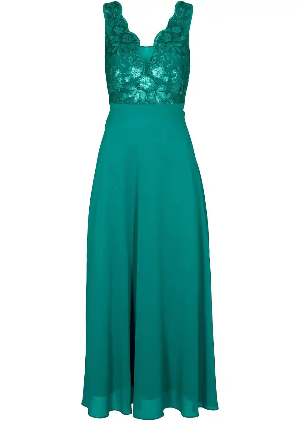 Elegantna večernja haljina s finim vezom i ukrasima od šljokica na gornjem dijelu