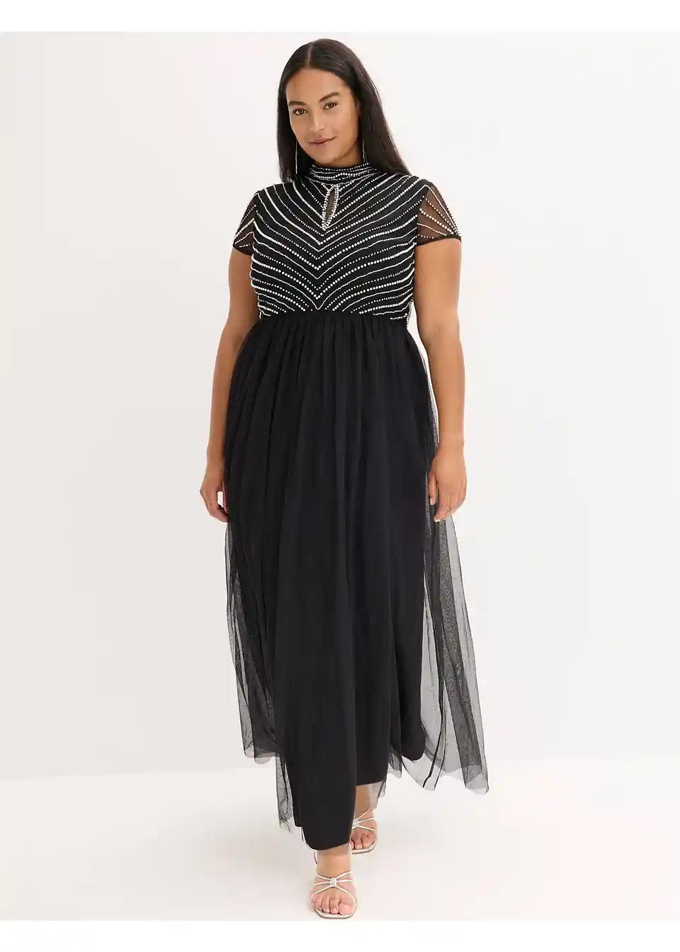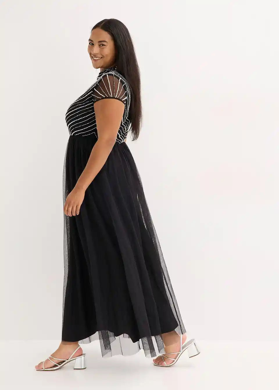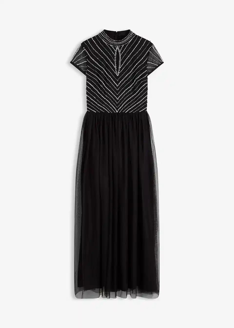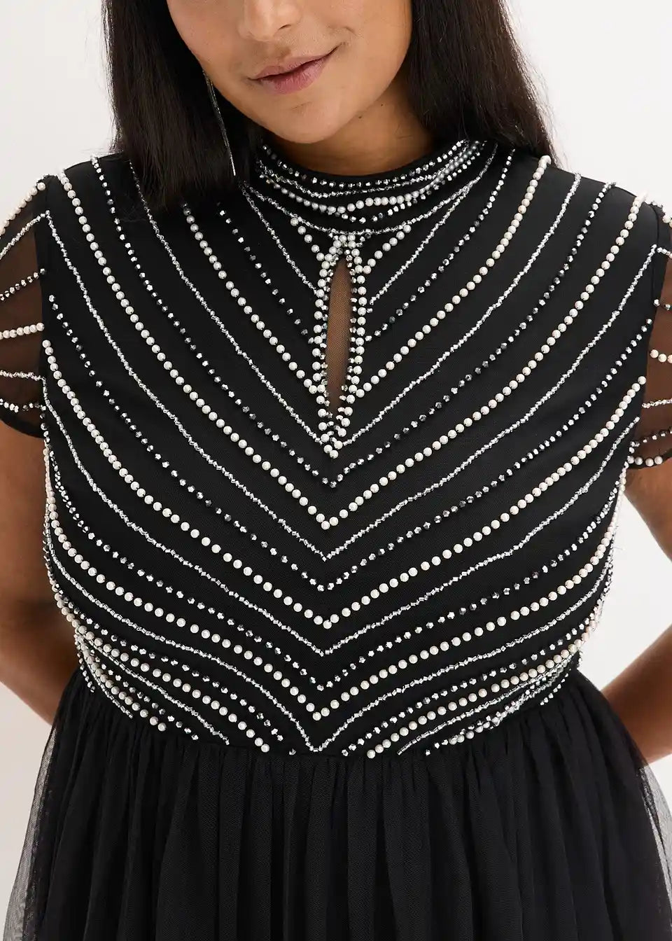 Moderna i ženstvena: večernja haljina od nježnog tila s keyhole-izrezom i vezom od perlica na gornjem dijelu