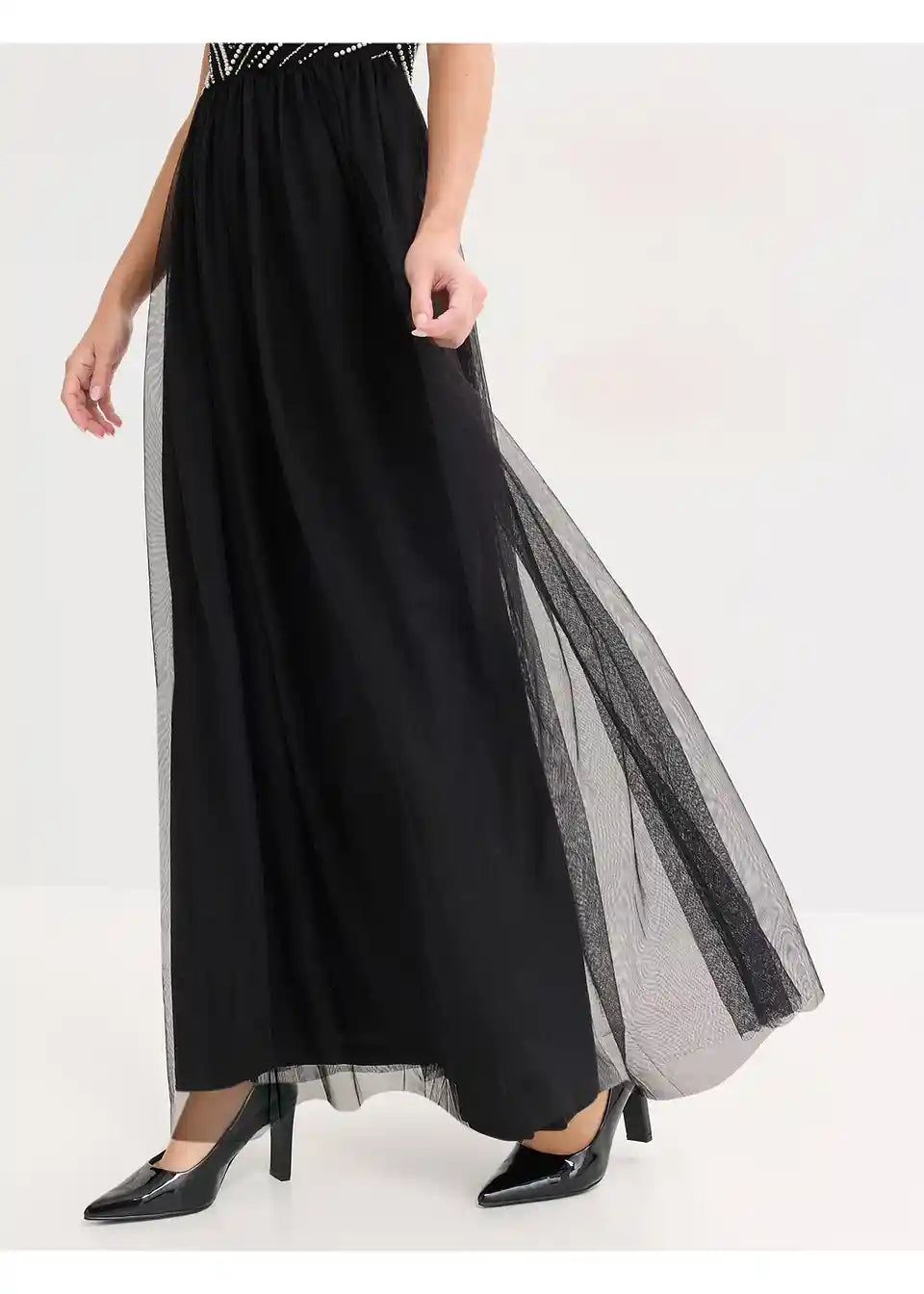 Moderna i ženstvena: večernja haljina od nježnog tila s keyhole izrezom i vezom s perlicama na gornjem dijelu