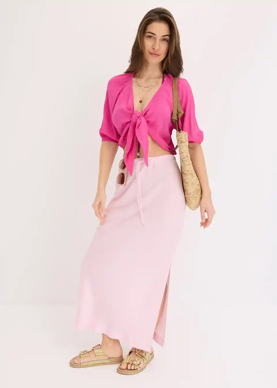 Moderna maksi suknja s prorezom i otvorenim rubovima