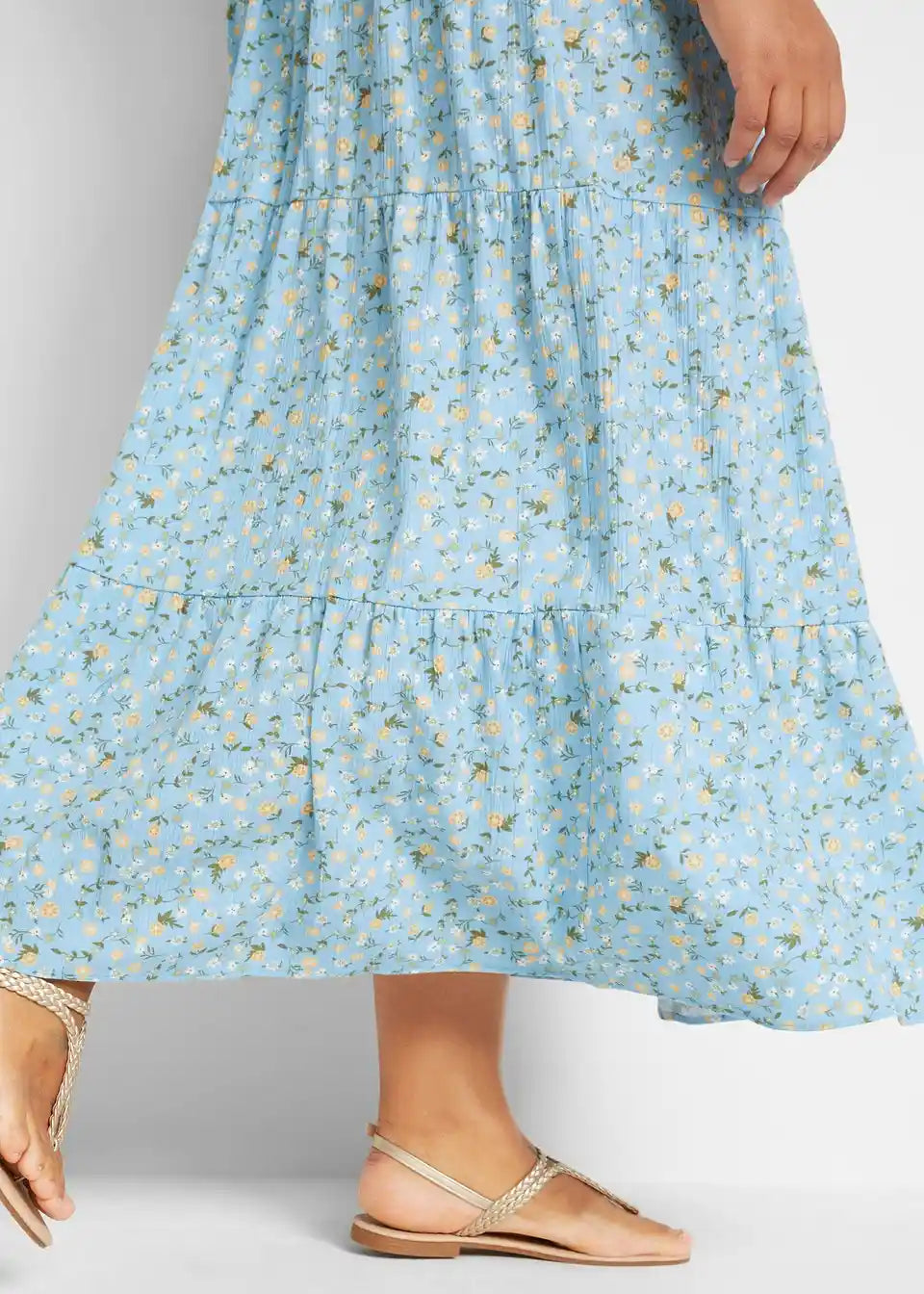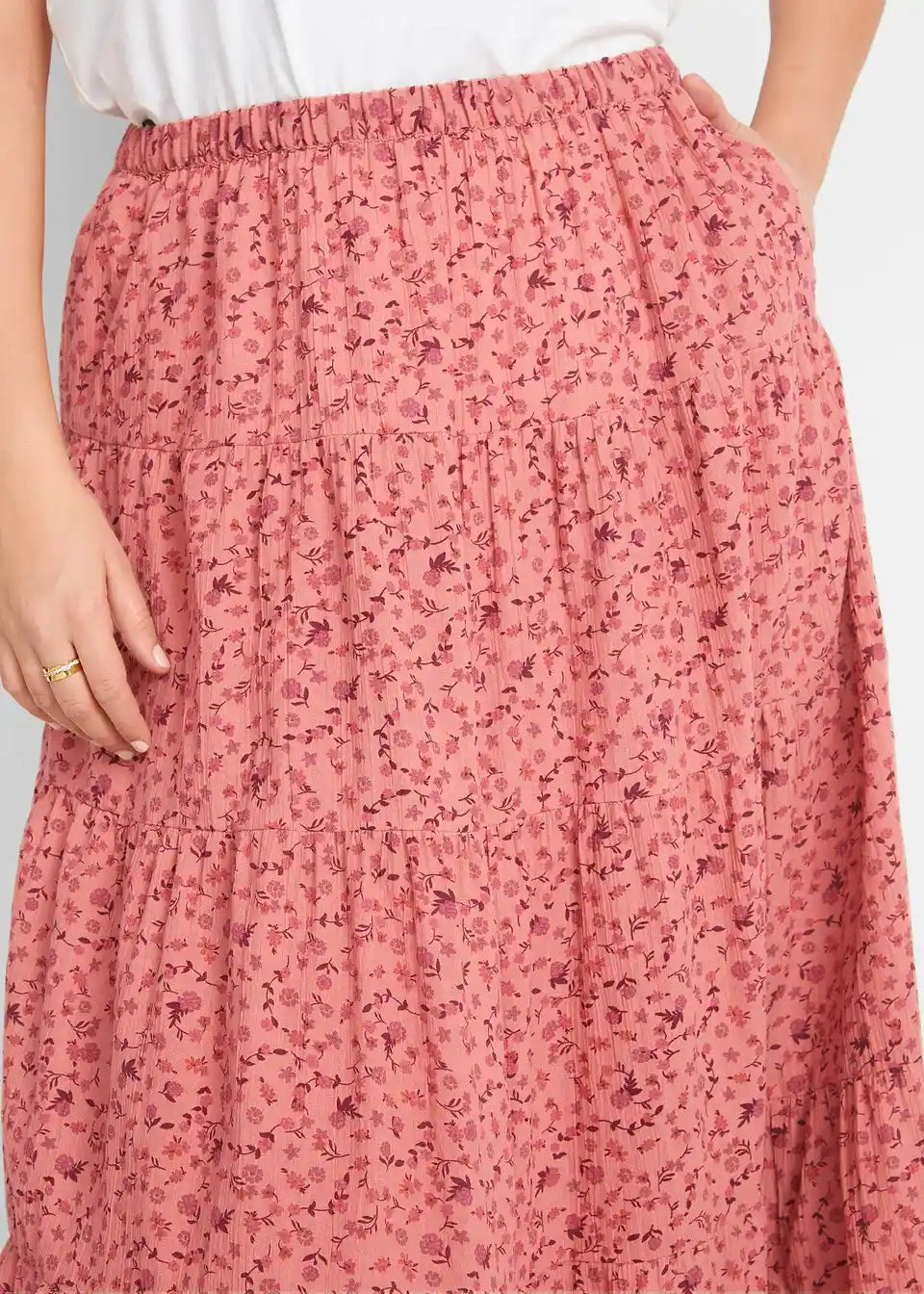 Pamučna slojevita suknja s elastičnim pojasom u maksi duljini