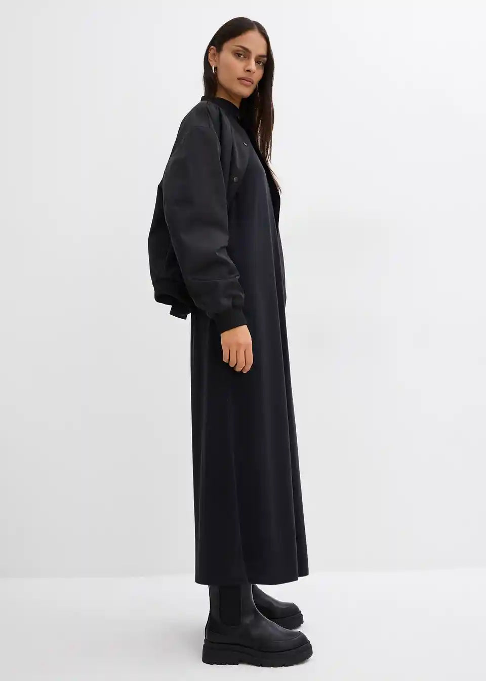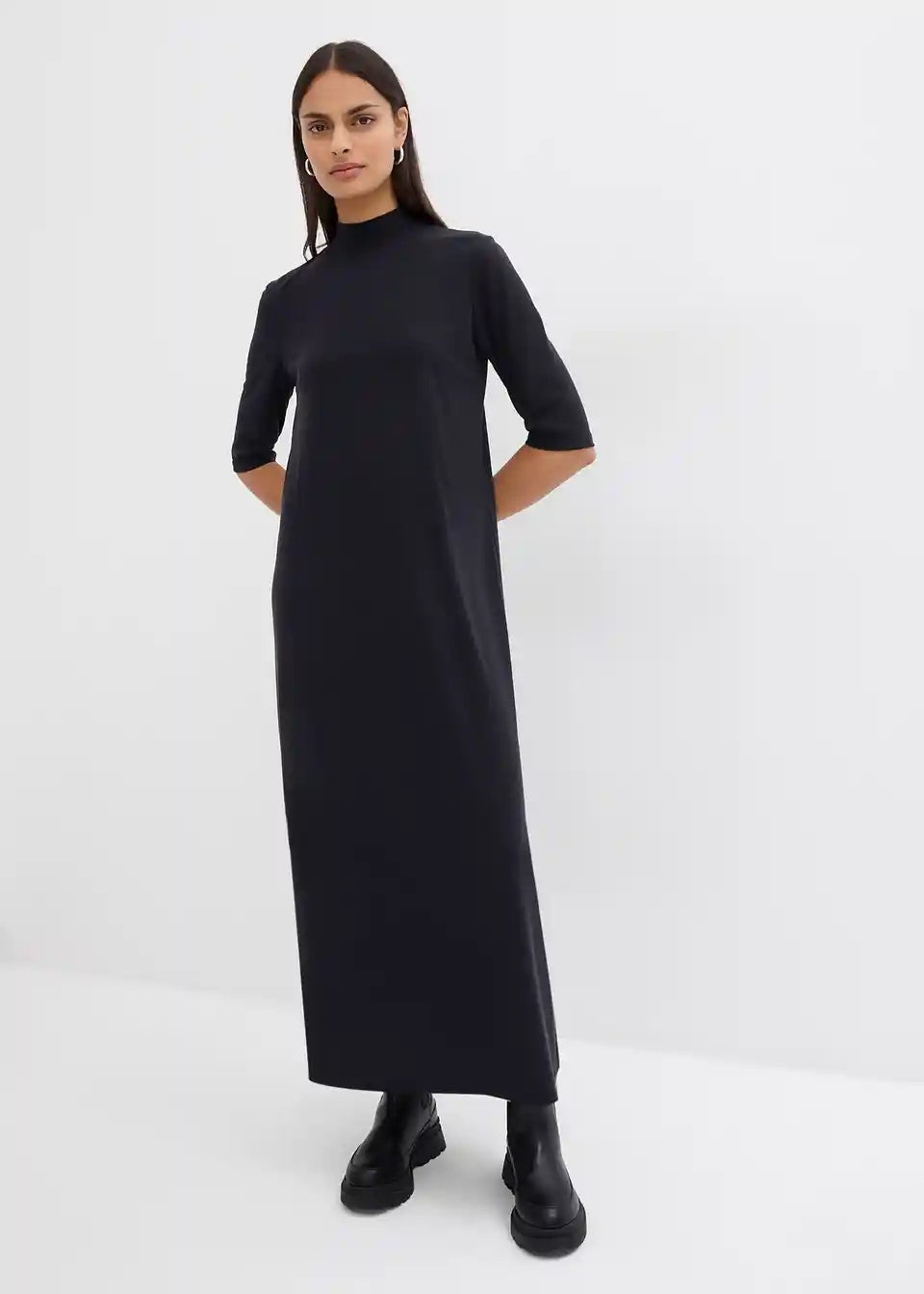 Široka T-Shirt haljina od meke modalne mješavine s visokim ovratnikom i detaljem šava na sredini stražnje strane