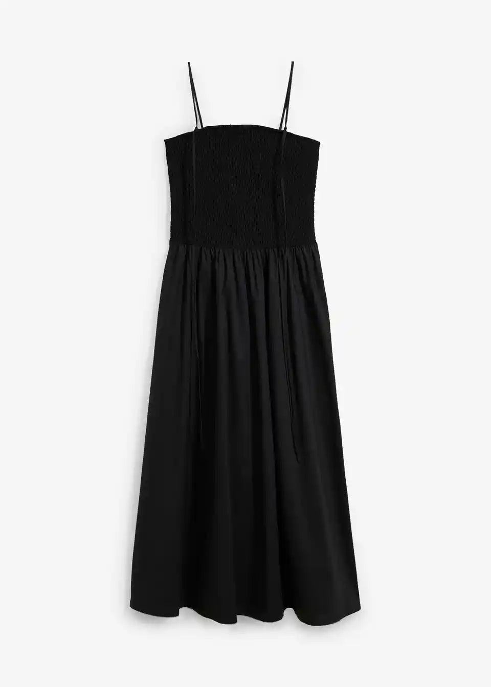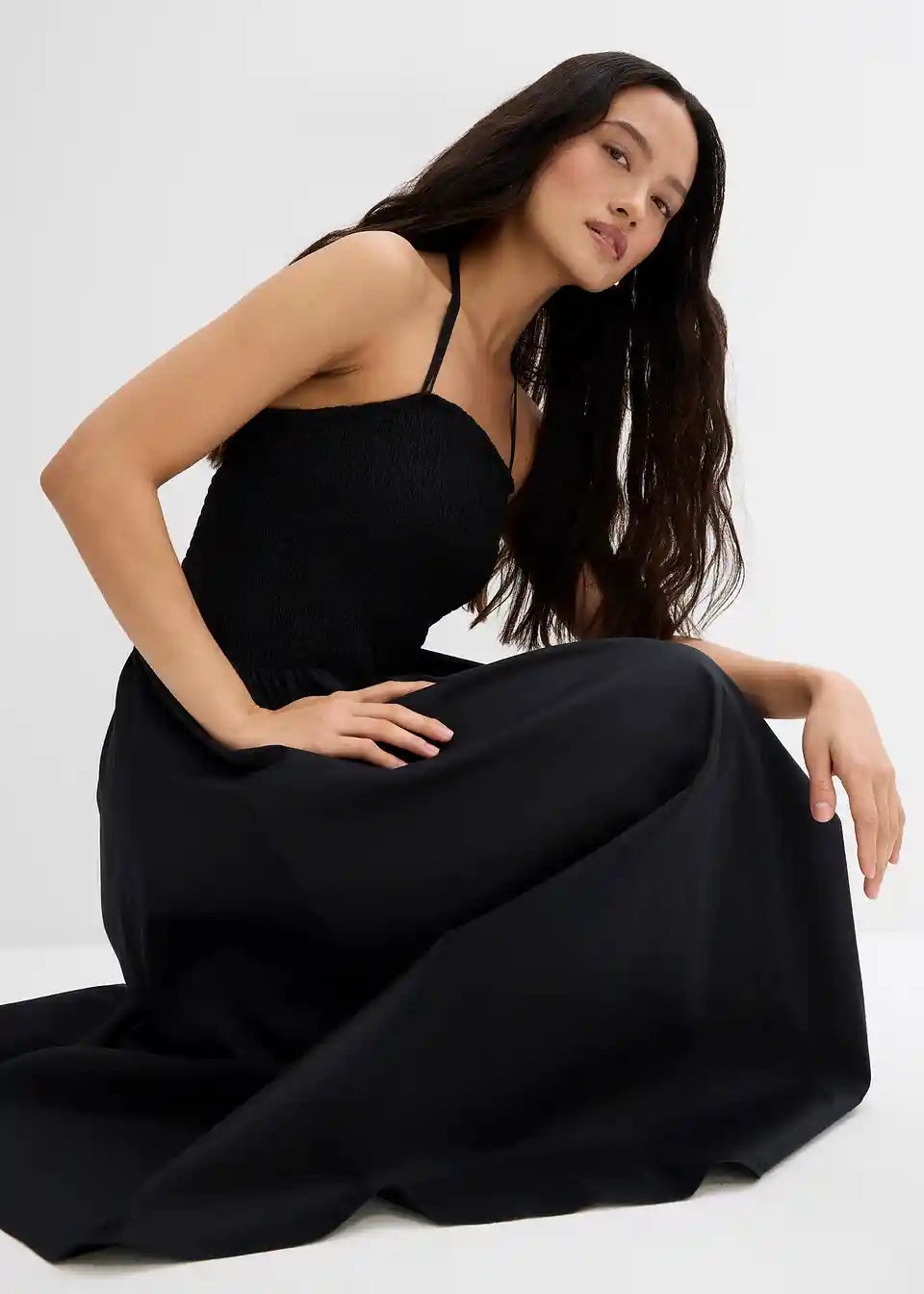 Midihaljina sa spaghetti naramenicama koje se mogu različito vezati i individualno prilagoditi obliku tijela, npr. kao mašna, oko vrata, bez naramenica. Dio s naborima u području poprsja pruža dodatnu slobodu kretanja i doprinosi udobnosti nošenja.