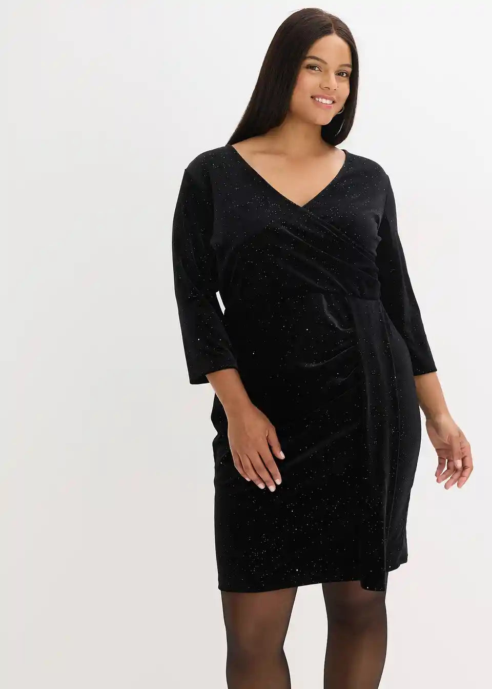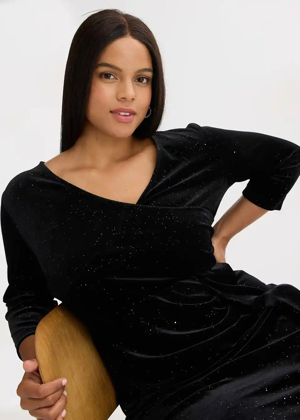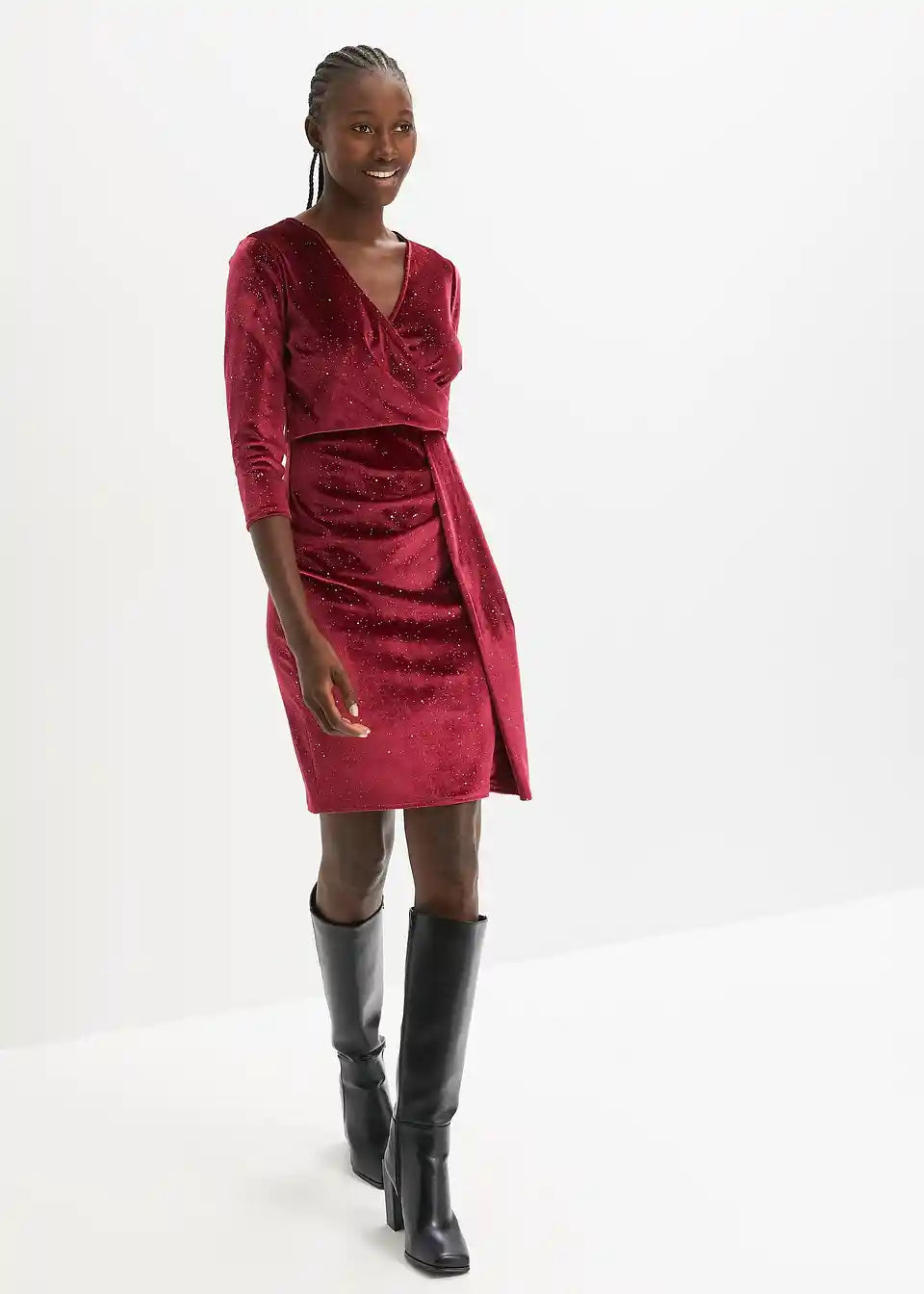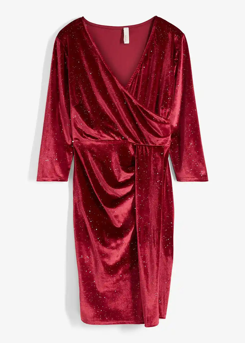 Moderna i ženstvena: baršunasta haljina s efektom preklopa s ukrašenim kristalićima i naboranim detaljima čini ovu haljinu savršenom za posebne prigode.