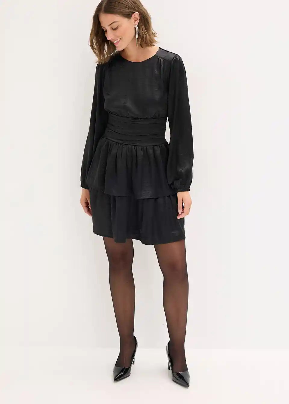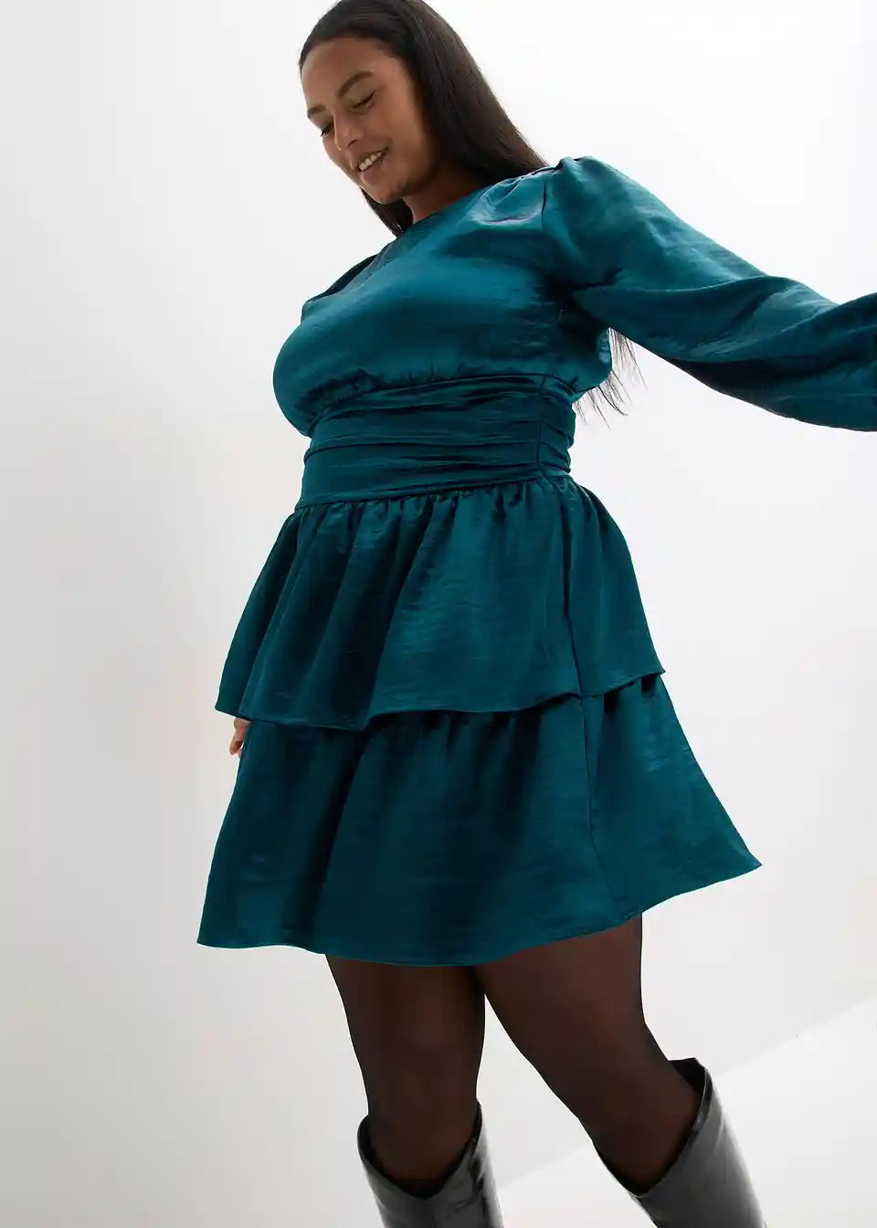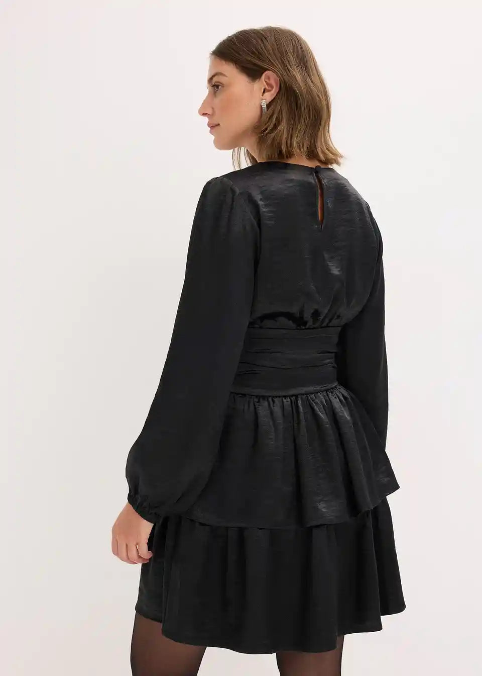 Kratka haljina s volanima, puf rukavima i naboranim pojasom u struku
