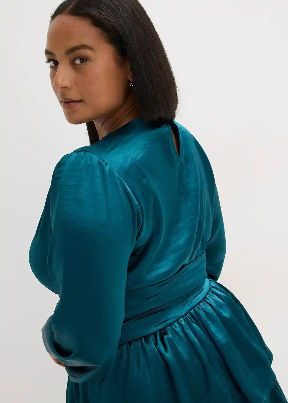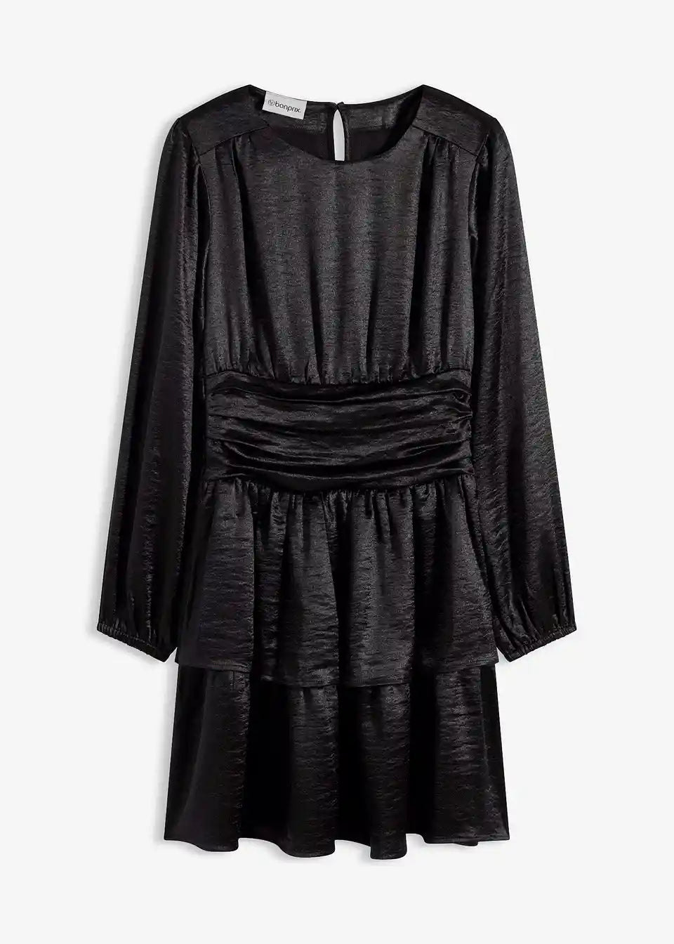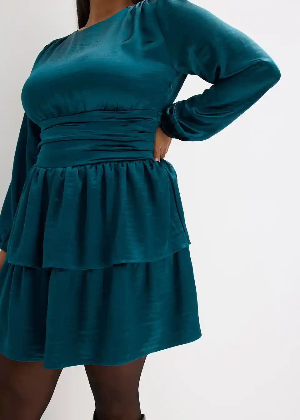 Kratka haljina s volanima, puf rukavima i naboranim pojasom u struku