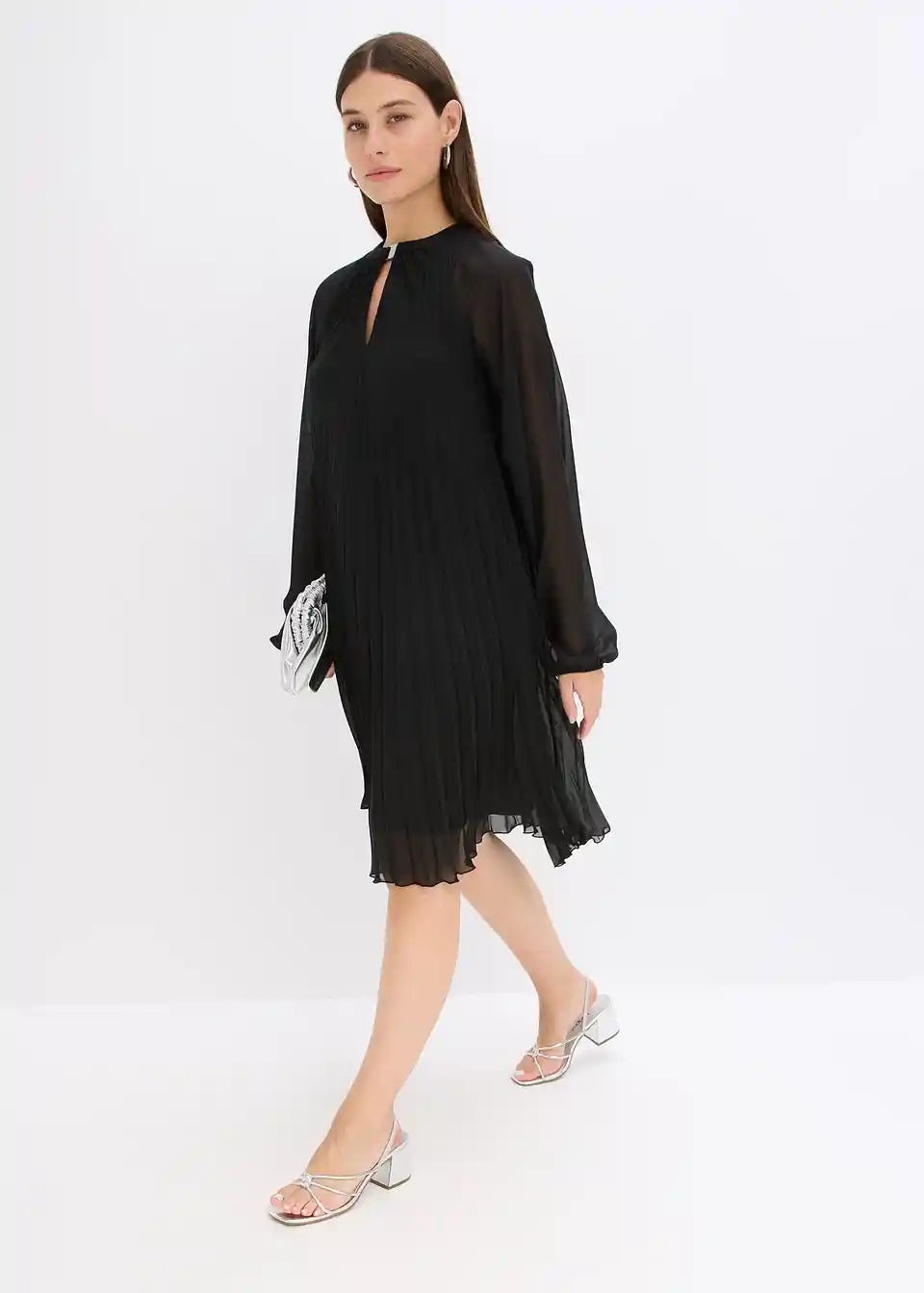 Modern i ženstven: Minikleid od finog šifona s plisiranim detaljima i balon rukavima