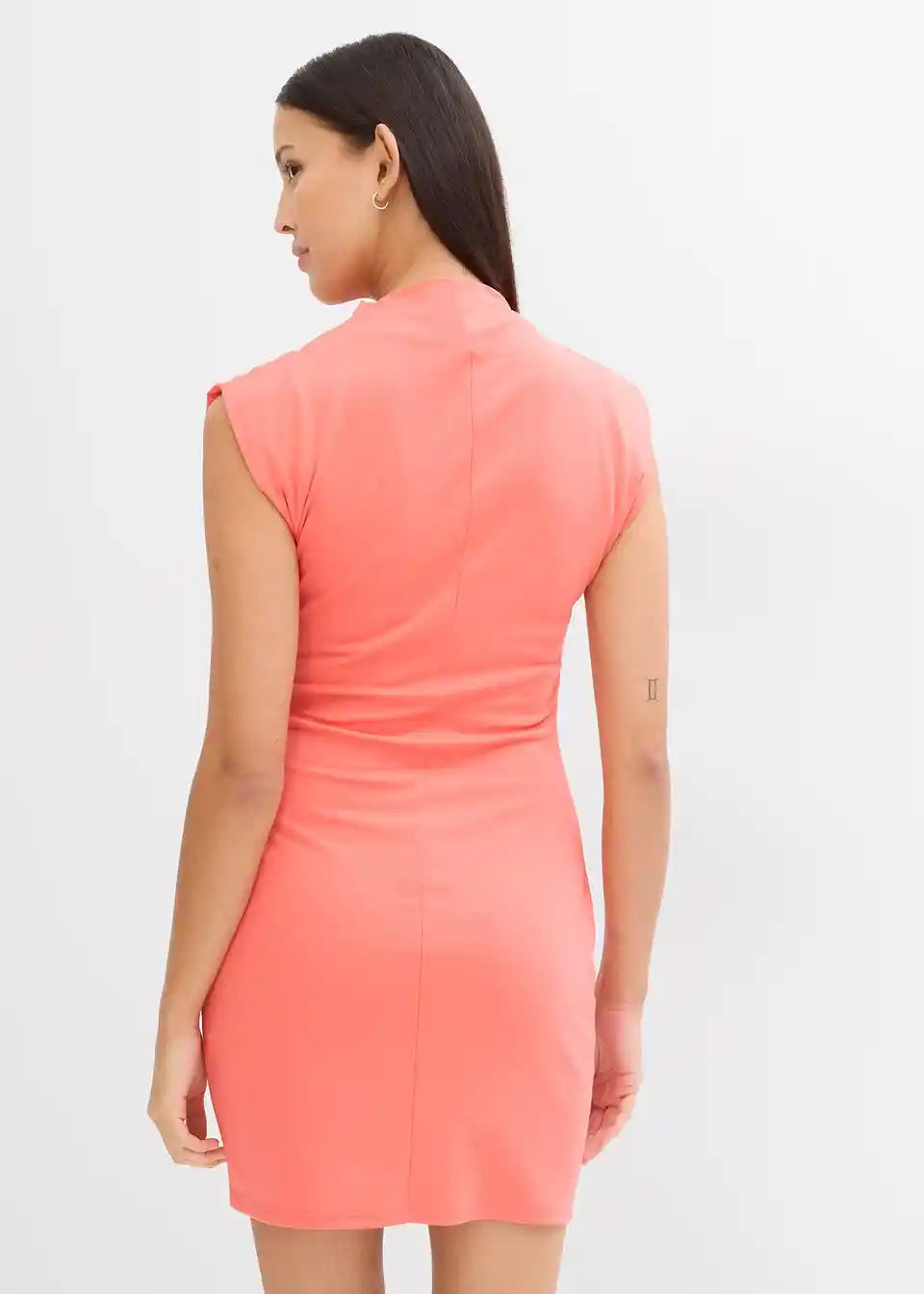 Moderna mini haljina s visokim ovratnikom i bočnim nabiranjem