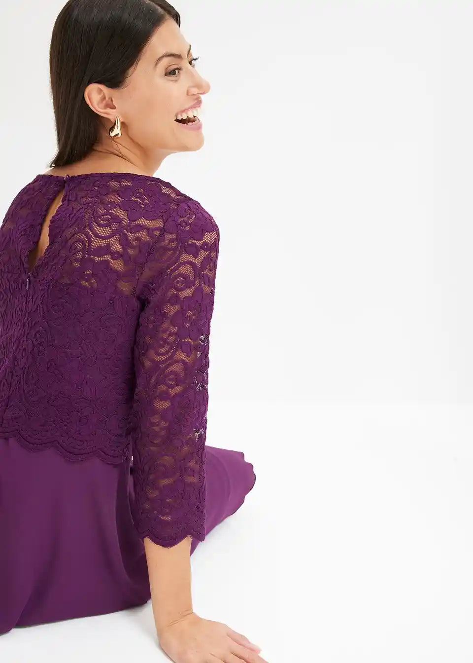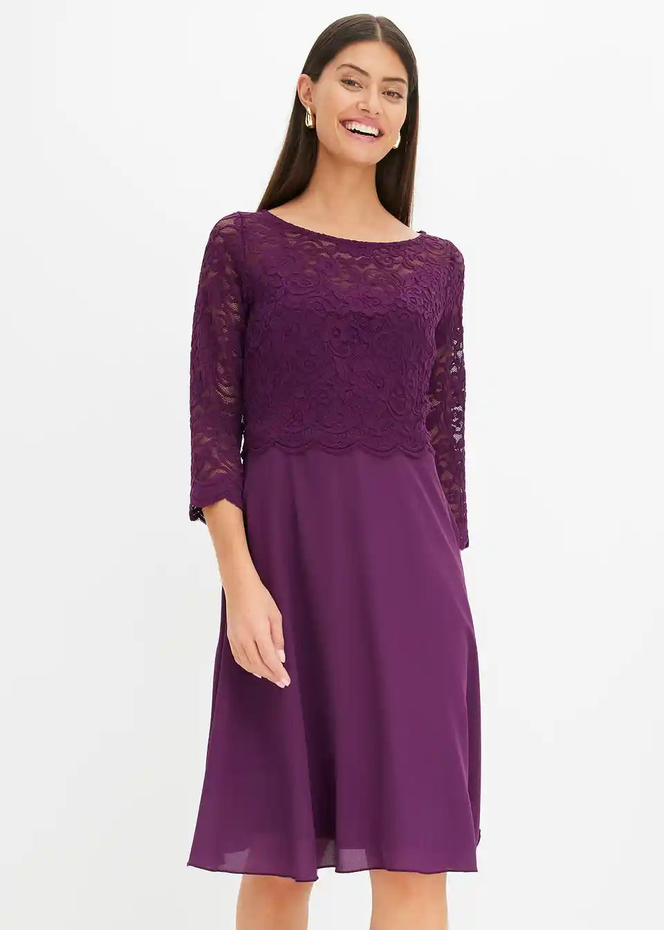 Minikleid s Chiffon suknjom i čipkastim gornjim dijelom s rubom u obliku školjke